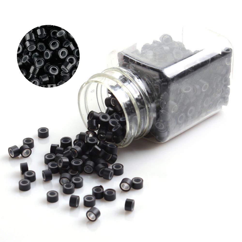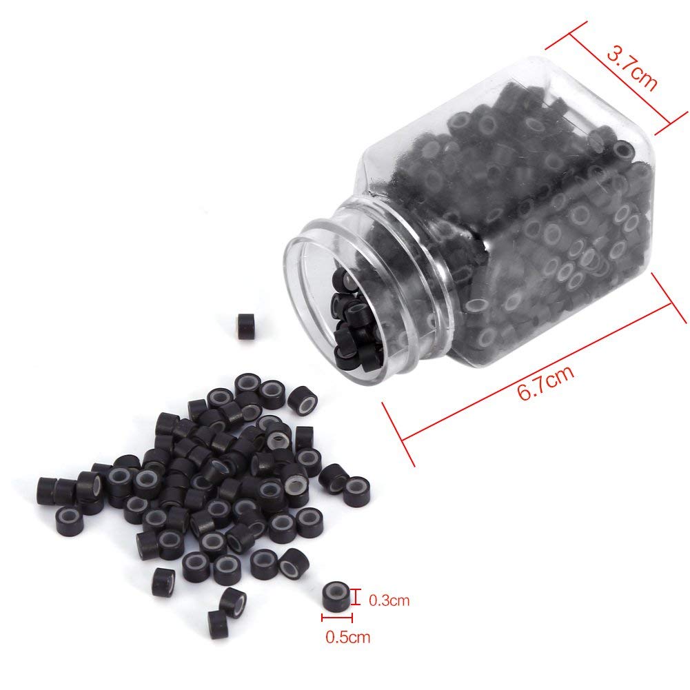 1000pcs Silicone Micro Link Rings Beads For Hair Extensions Tool (black)