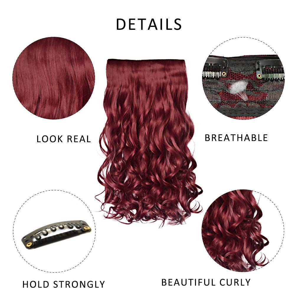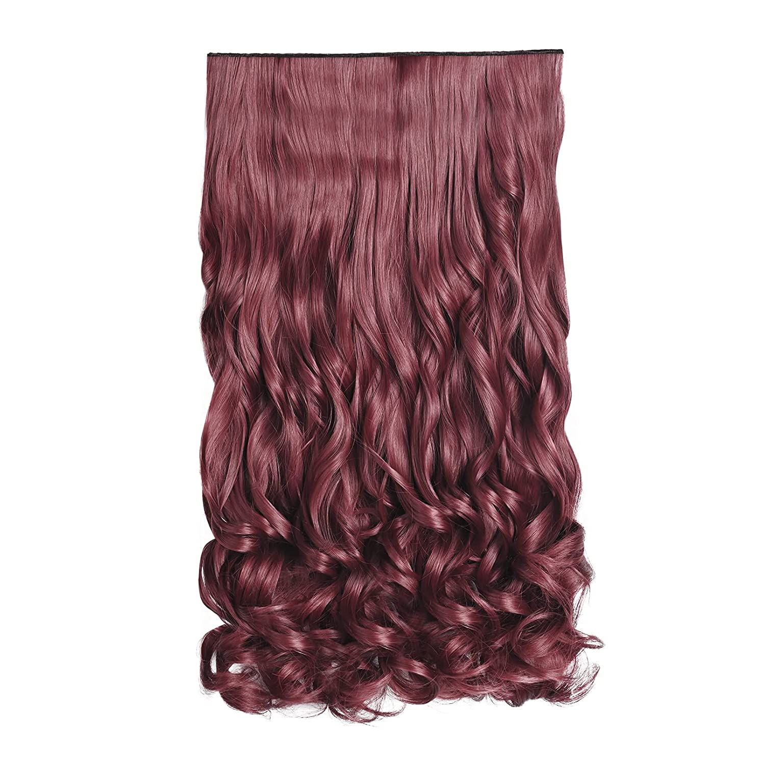 12″ 1-pack 3/4 Full Head Curly Wave Short Clips In On Synthetic Hair Extensions Hair Pieces For Women 5 Clips – Wine Red1810