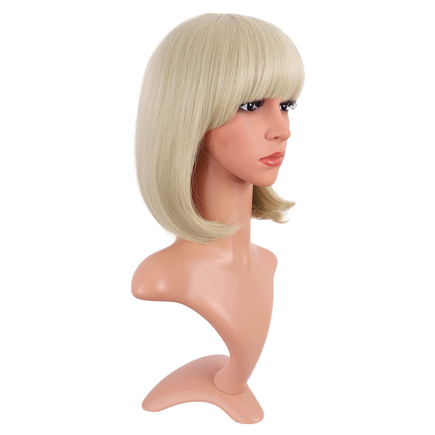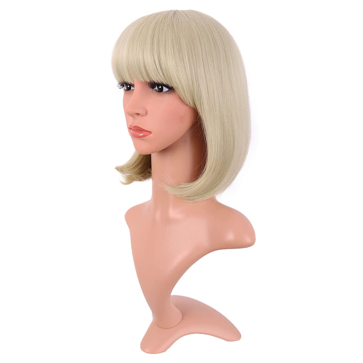 12 Inch /30 cm Fashion Lady Short Straight Synthetic Flat Bangs Bob Wig (Blonde)
