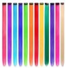 12 Pcs Colored Hair Extensions Colorful Clip In Hair Extensions 21 Inch Synthetic Straight Hair Extensions For Kids Girls Women