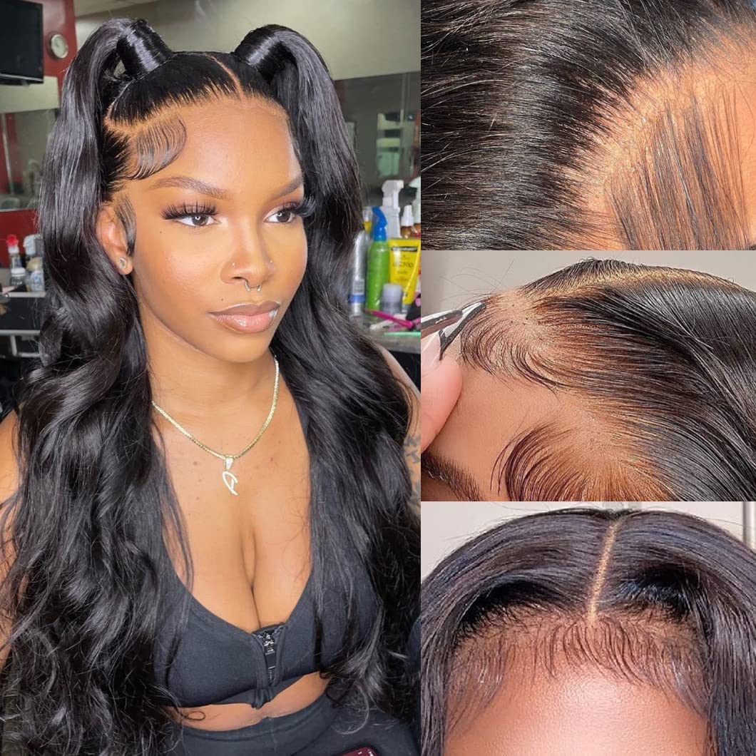 • 【Natural and Healthy】🌺 No Shedding&tangle Free, 100% Brazilian Virgin Human Hair Wig, 10A Body Wave Lace Frontal Wigs Human Hair Pre Plucked with Baby Hair Glueless