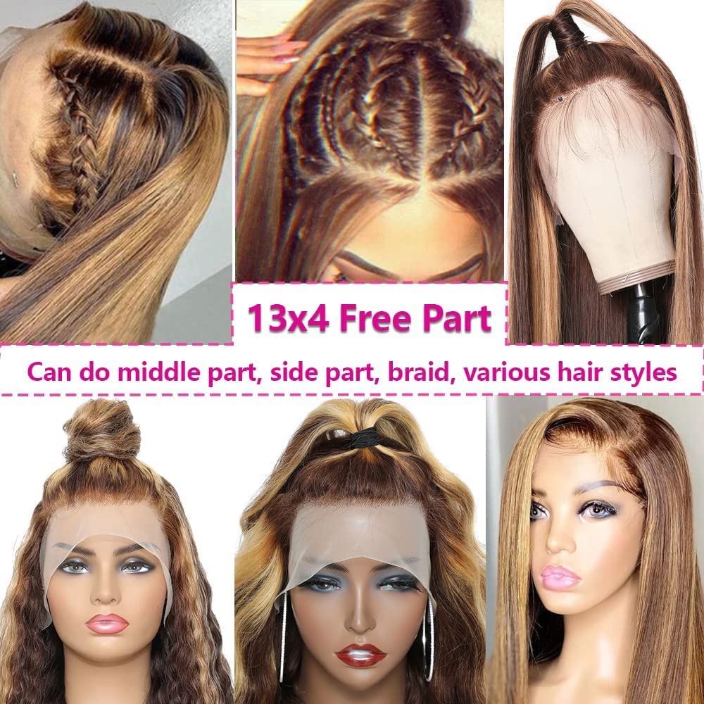 13×4 Lace Front Wigs Human Hair Body Wave Real Hair Wigs For Women 180% Density Free Part Wig 100% Unprocessed Brazilian Human Hair Wigs With Baby Hair (16 Inch, P4-/30/27-straight)