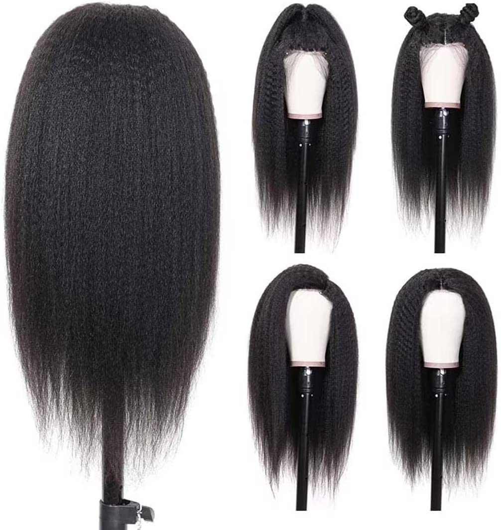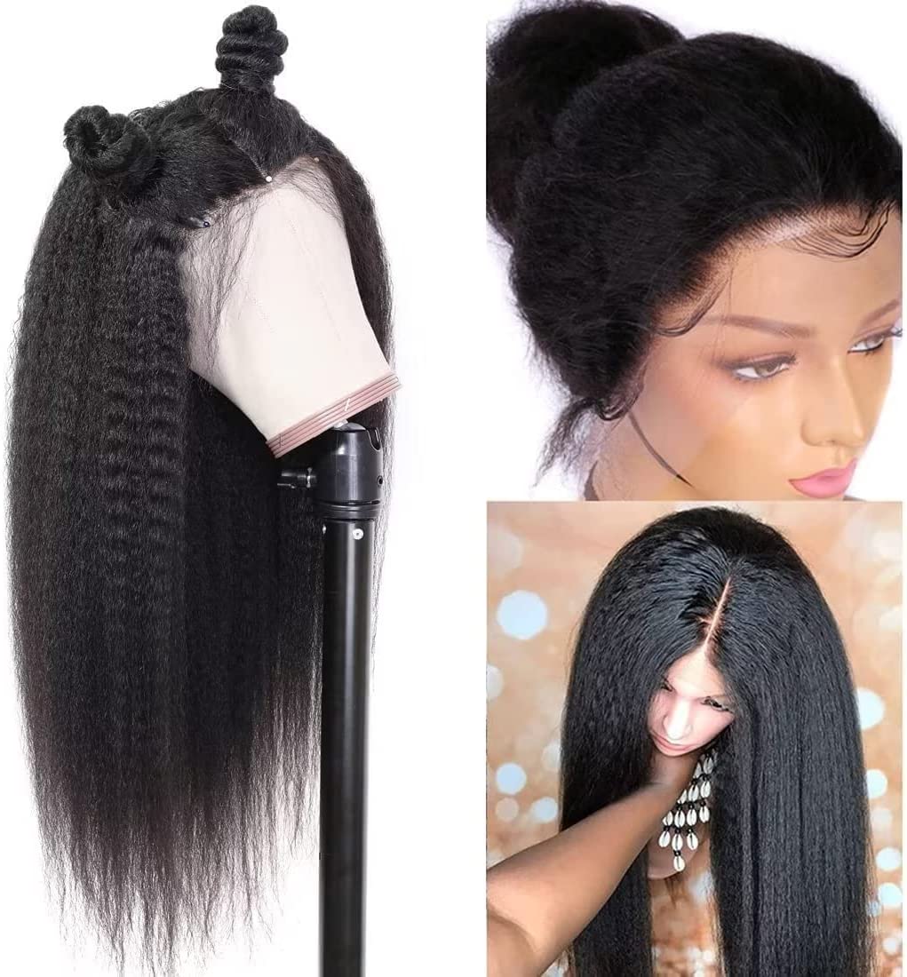 13x4Hd Front Wig Human Hair Yaki Wigs Wigs Yaki Wig High Hatches Natural Hair Brazilian Kinky Straight Human Hair Wig Densite 180% Natural Color 16 inches