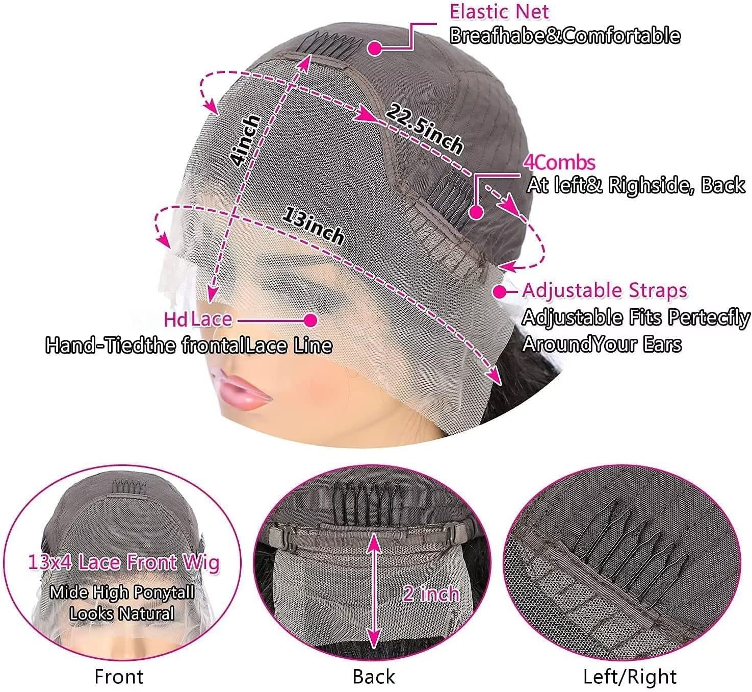 - 2. 【13×4 Lace Wig Human Hair Border Lace】 HD Lace Border Lace, Brazilian wig Lace Wig, Wigger Lace Natural Hair Front. natural hair