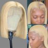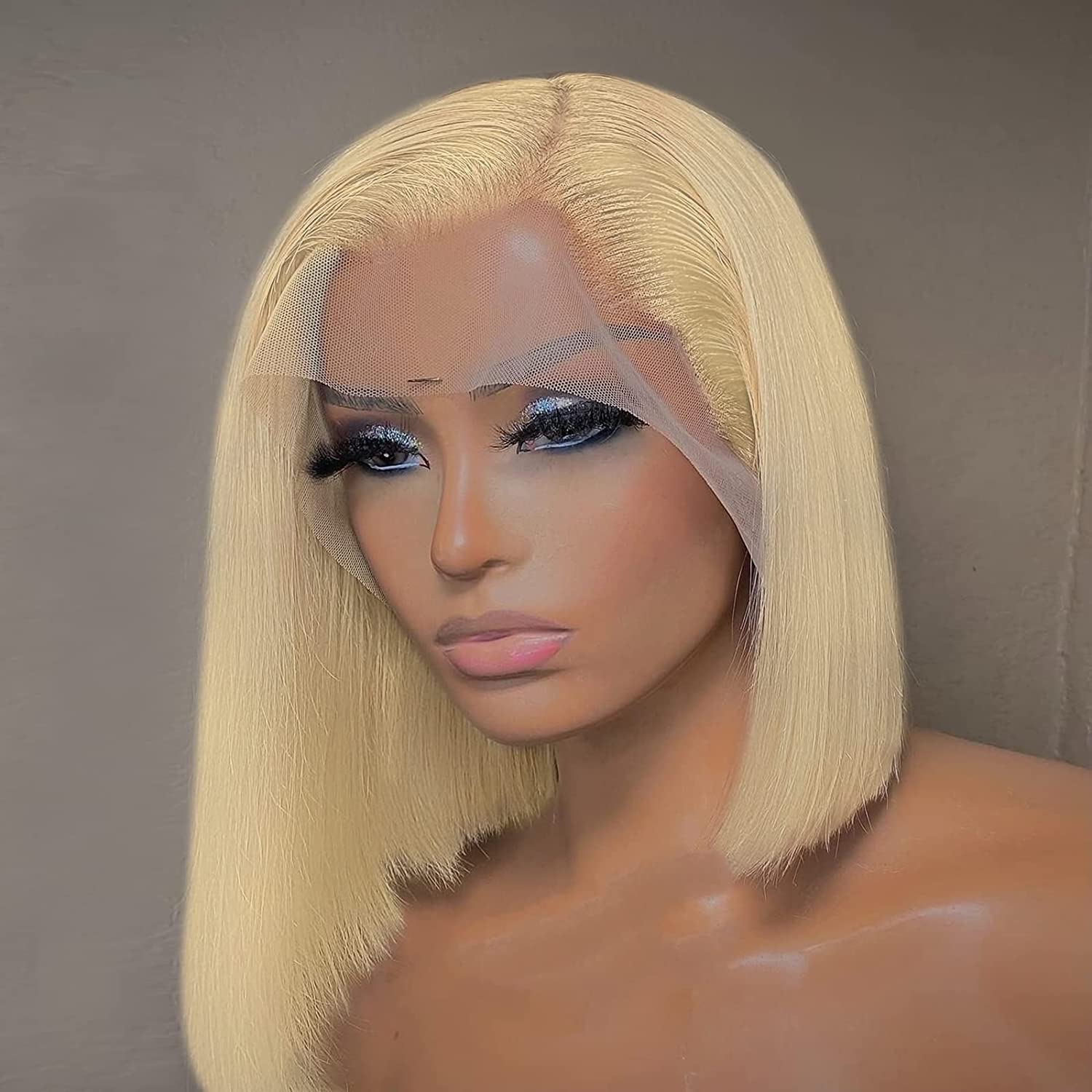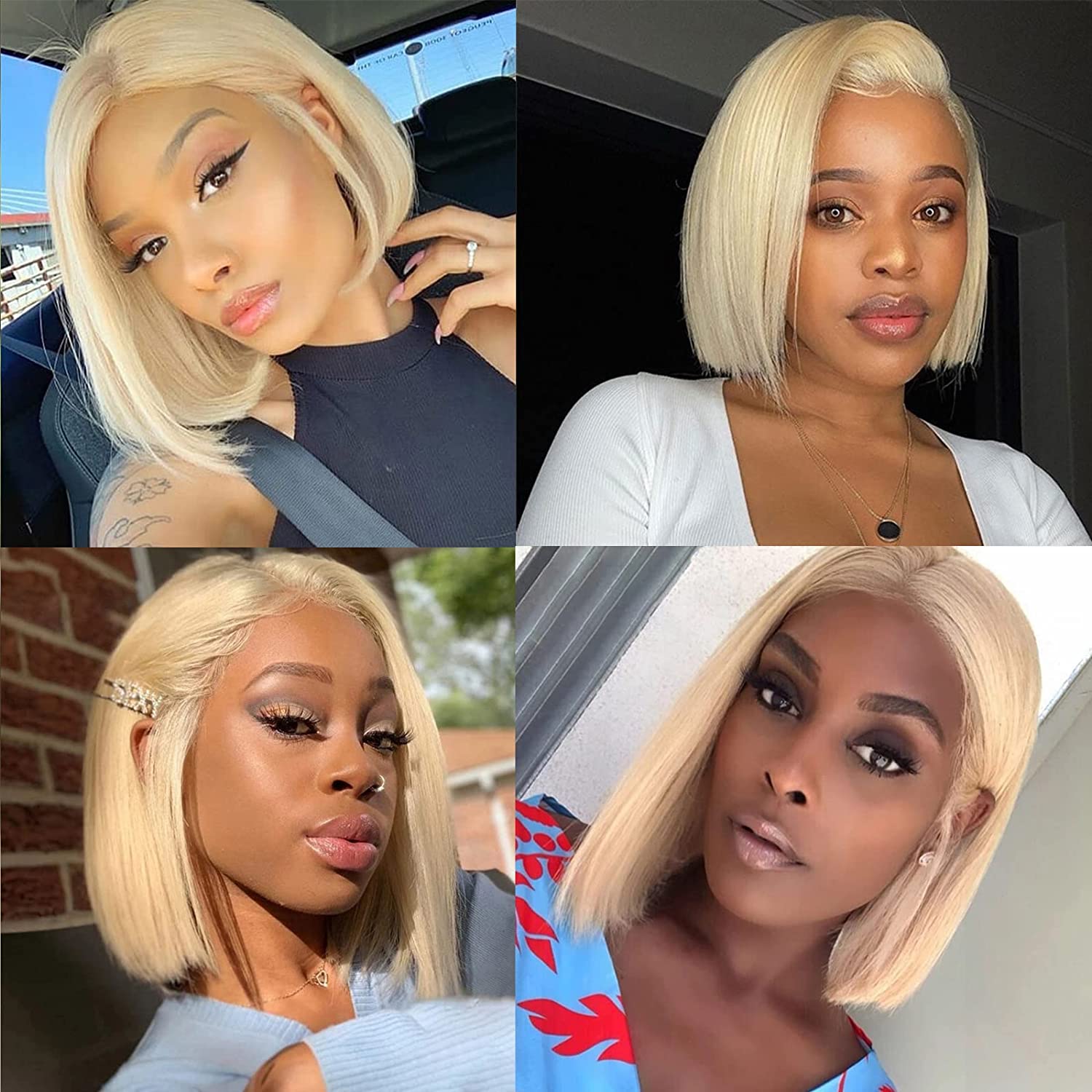 - Blonde Bob Lace Front Wigs Human Hair High Quality Lace:Transparent Lace Wig is Invisible, Soft, Breathable And Comfortable. Pre-Plucked Natural Hairline With Around Baby Hair.