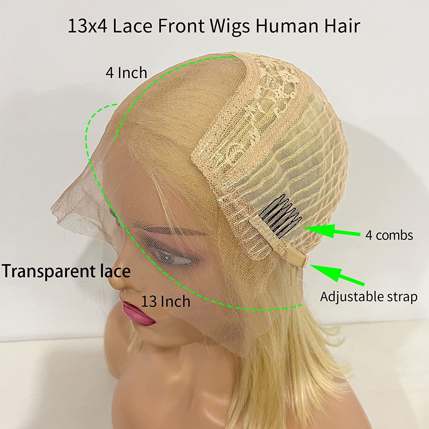 - 613 Blonde Bob Wigs introduce:13×4 lace front Medium Cap(22.5 inch)with Adjustable Strap and 4 Combs, Easy to Adjust & Durable, Wear Comfortable. beginner friendly.