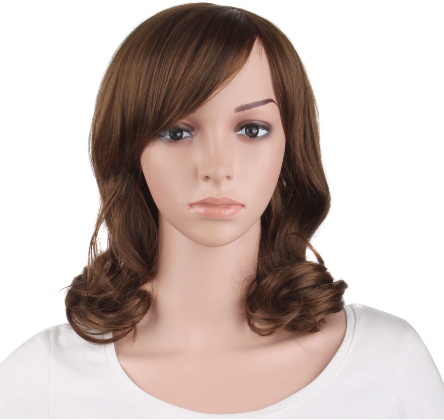 16″/40cm Fashion Side Bangs Medium Curly Wig (brown)