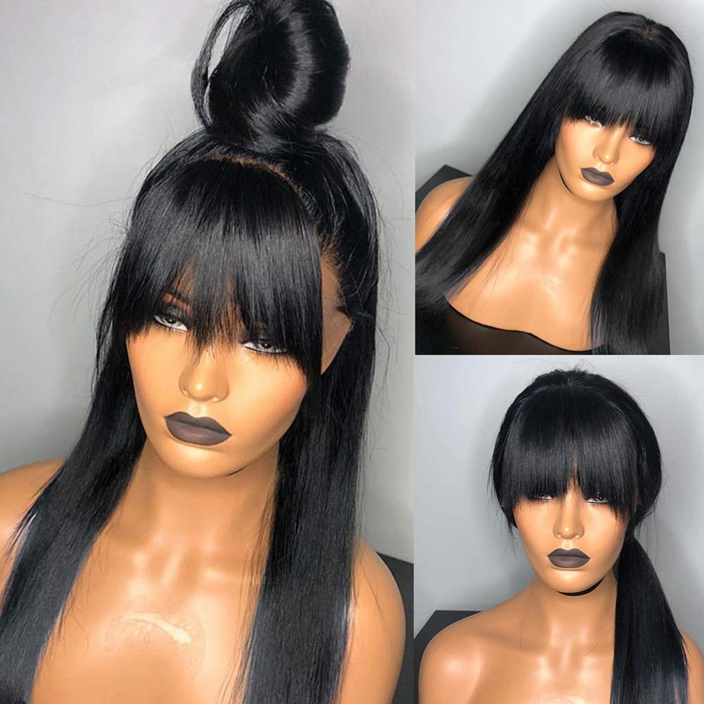 - Hair Material: 100% Unprocessed Brazilian Virgin Straight None Lace Front Wigs Human Hair with bangs, Brazilian Human Hair Wigs