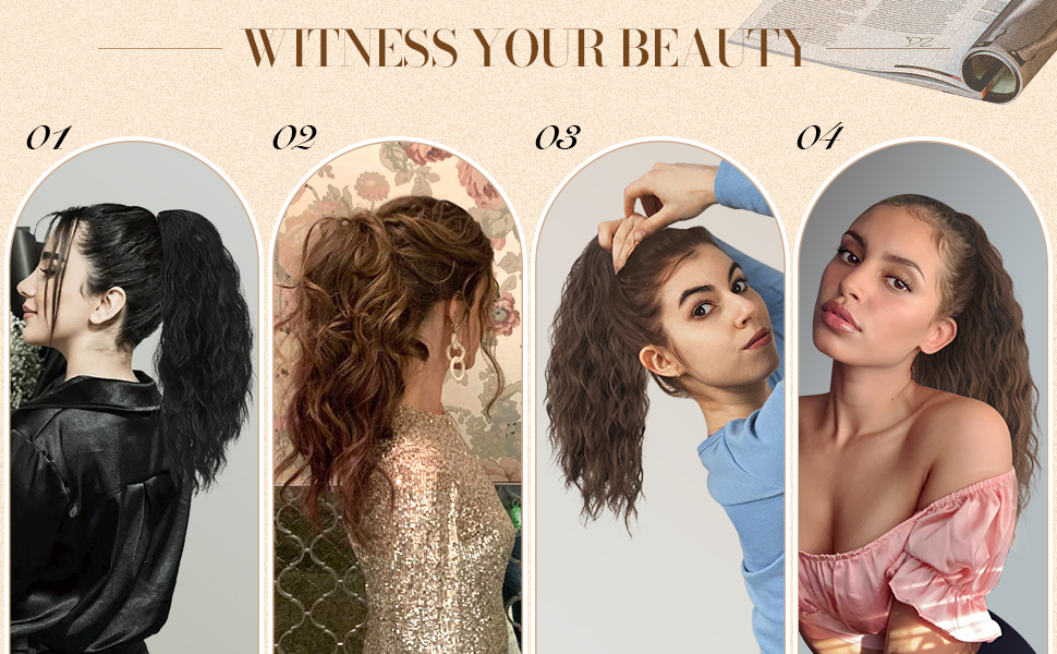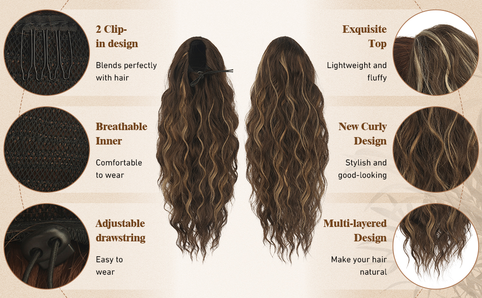 • 【Drawstring Design】Compared to claw ponytails, drawstring ponytails put less burden on your head and attach more naturally with your own hair. Perfect for you to increase your hair volume and fullness, making you more charming and attractive.