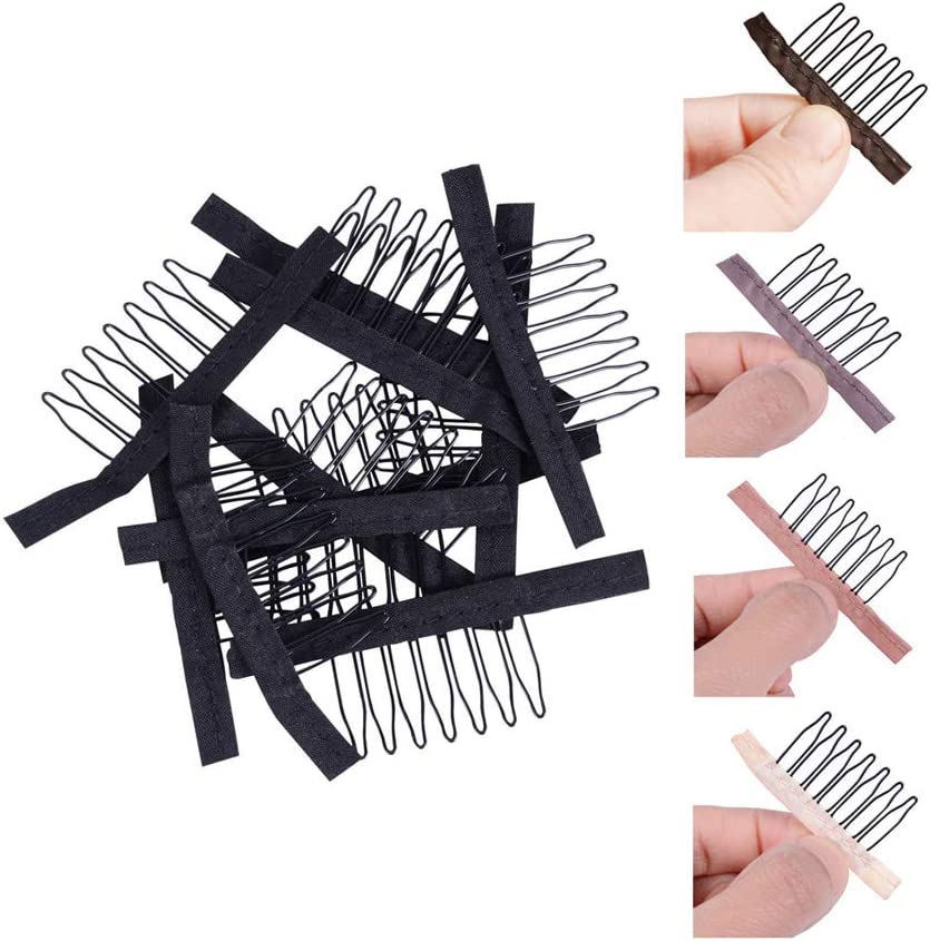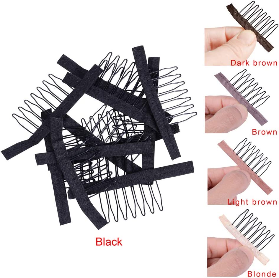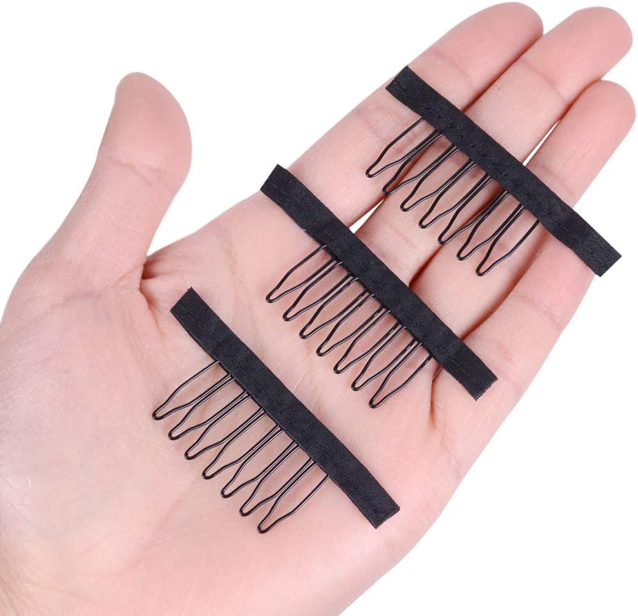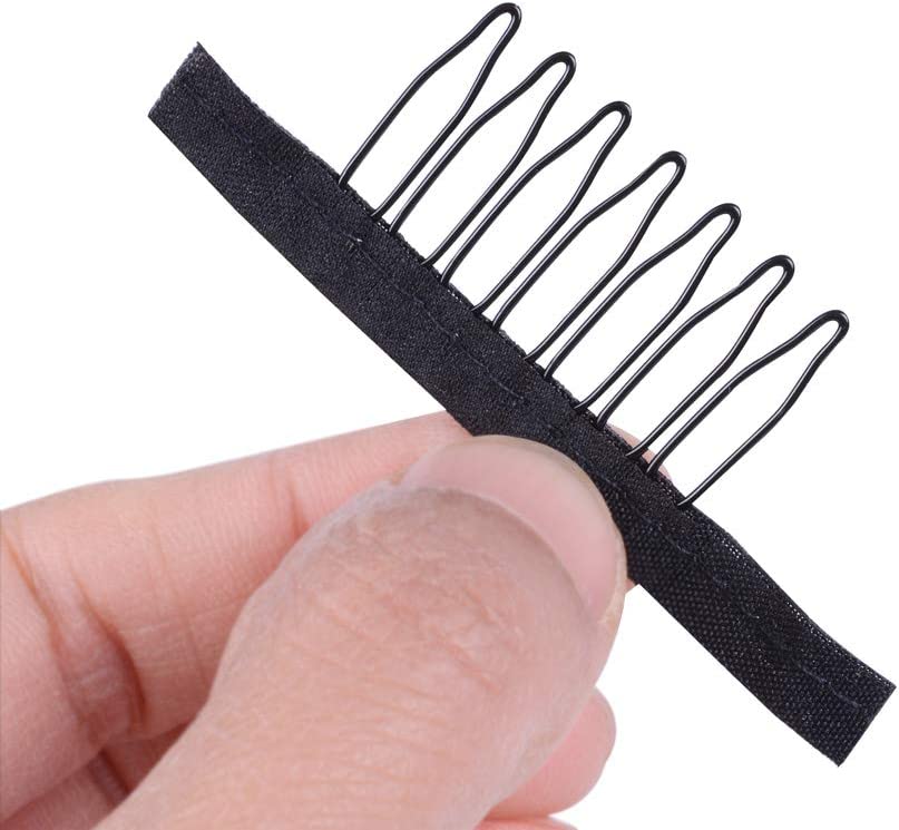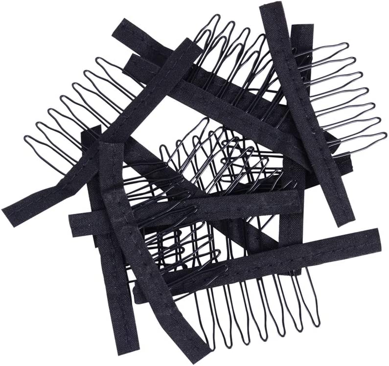 24 Pcs/lot Wig Combs 7-teeth Wig Clips Steel Teeth Polyester Durable Cloth Wig Combs For Hairpiece Caps Wig Accessories Tools (black)