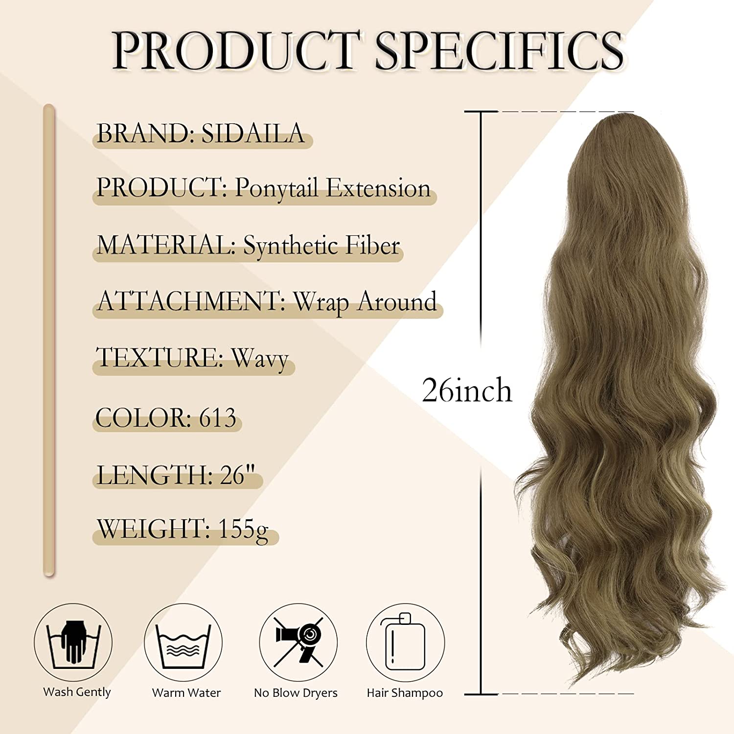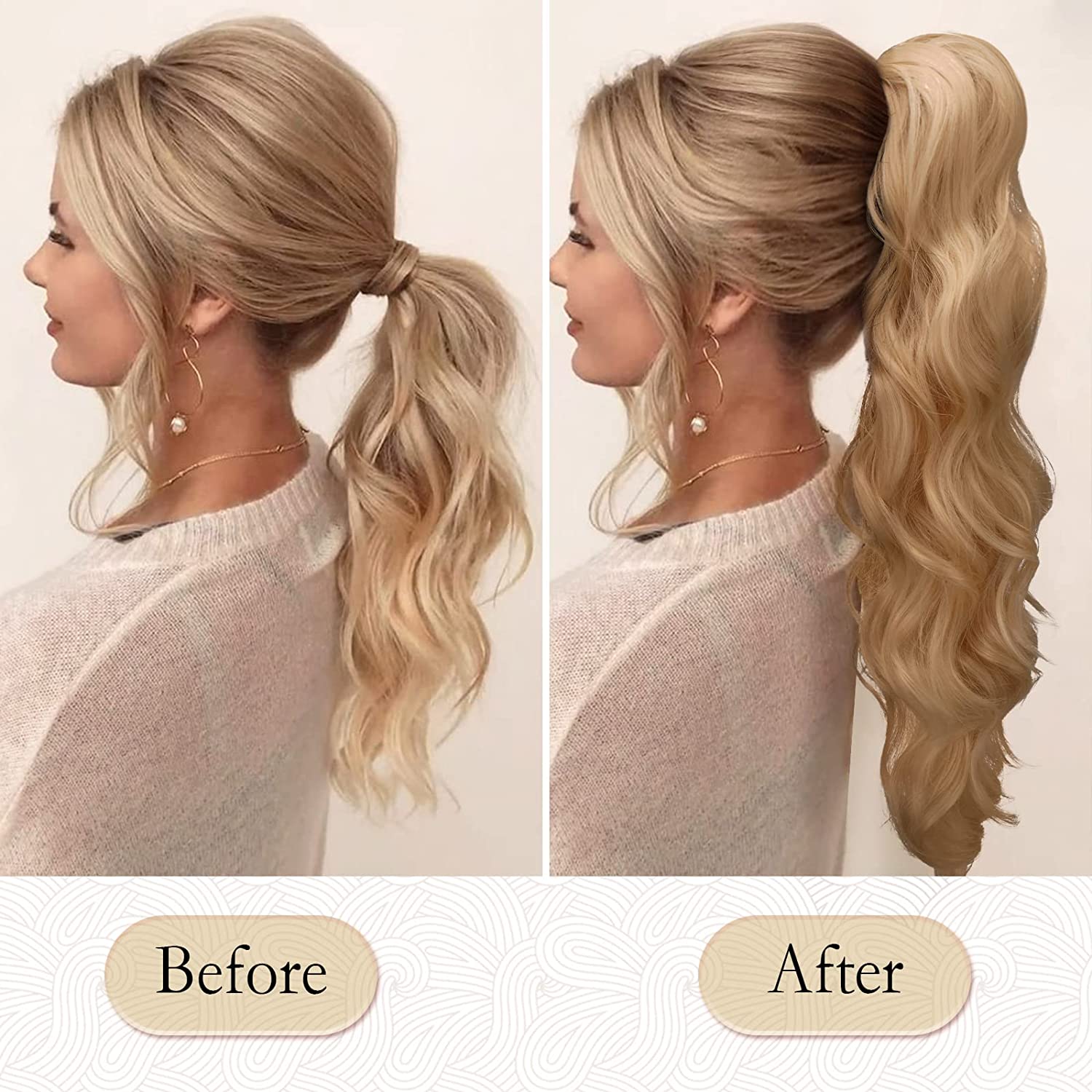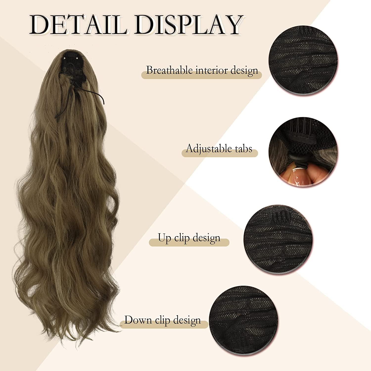 Hair Extensions Ponytail Heat Resistant Synthetic Clip in Ponytail Hair Extensions Wavy Wrap Around Drawstring Hairpiece for Women Long Ponytail Extensions