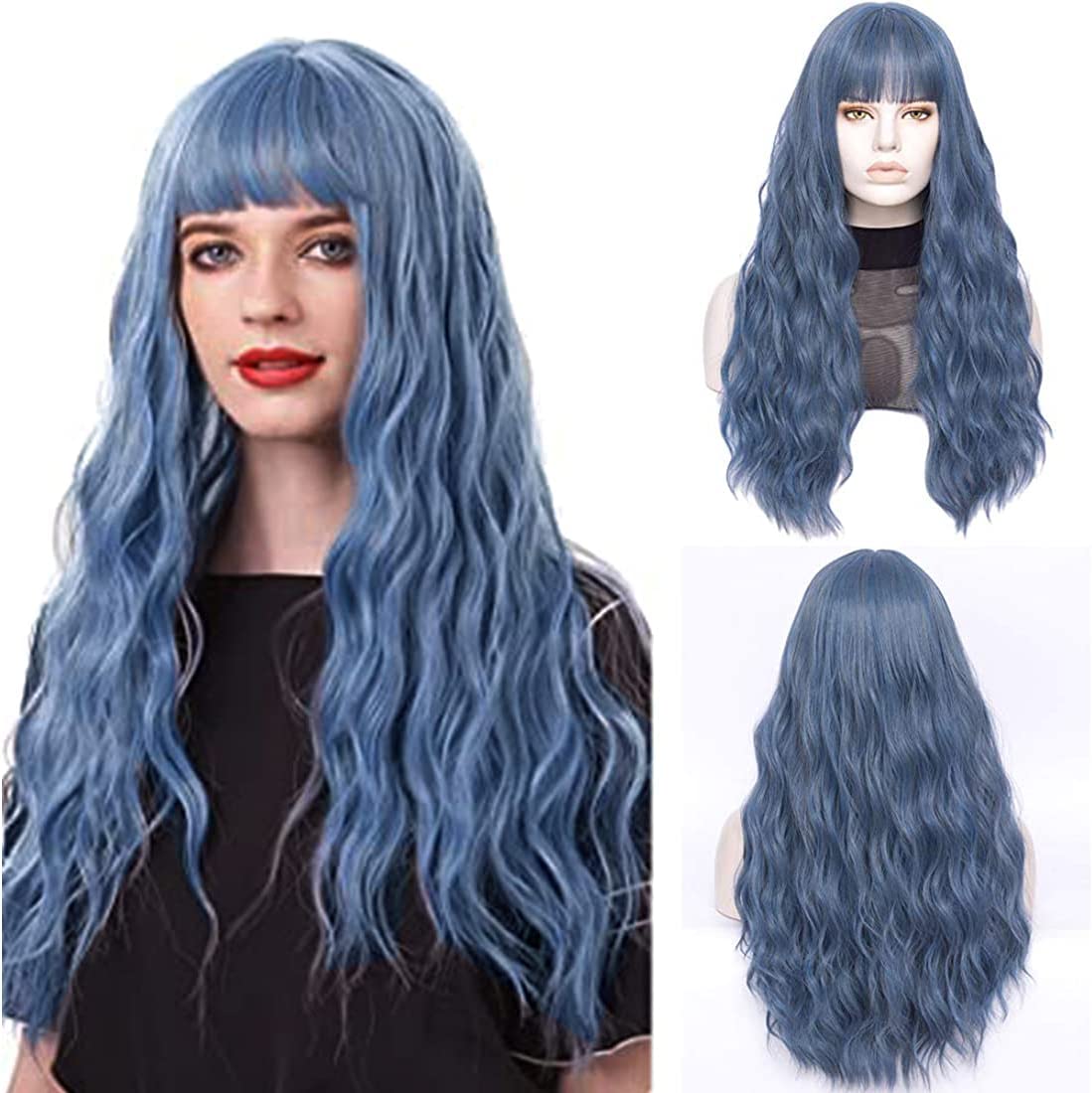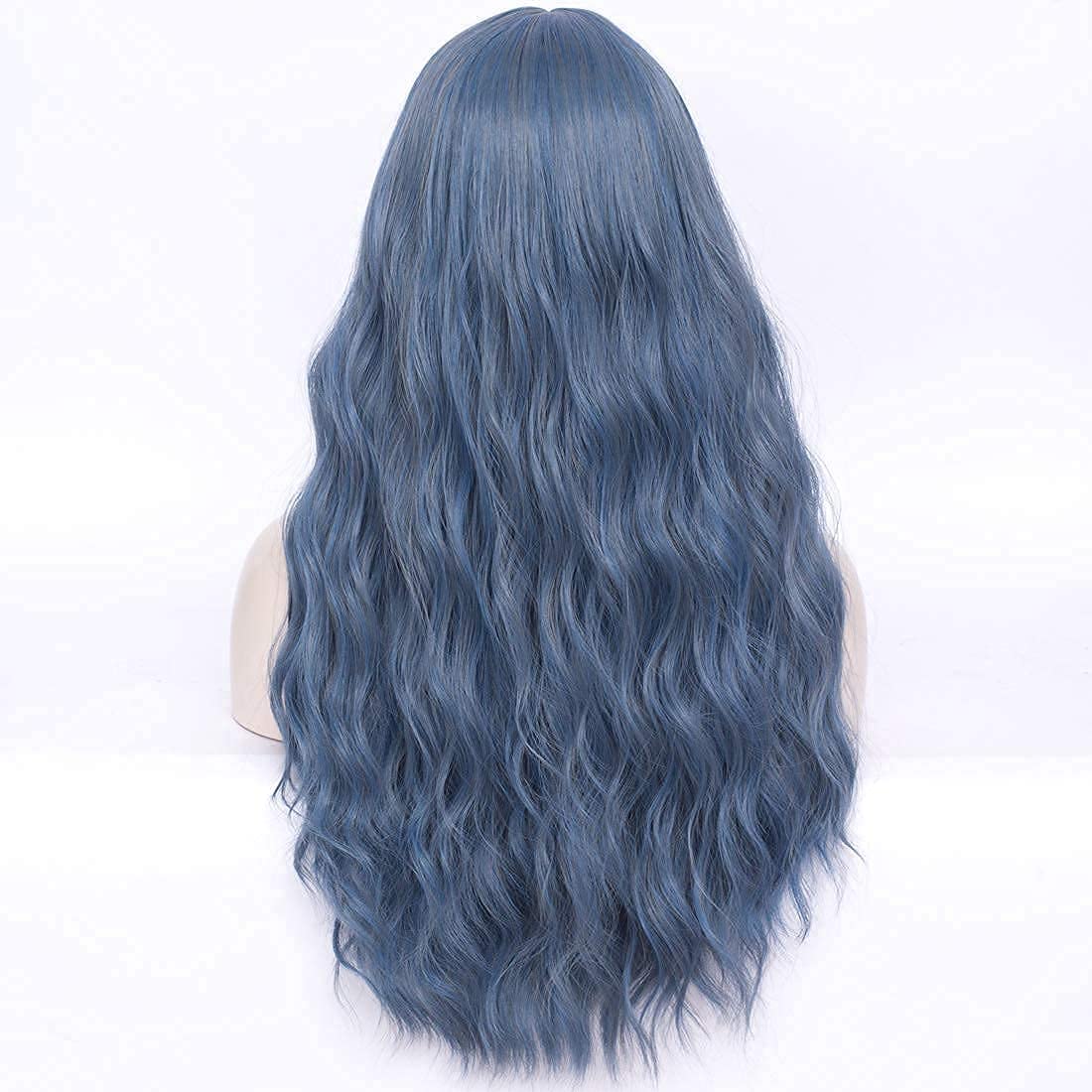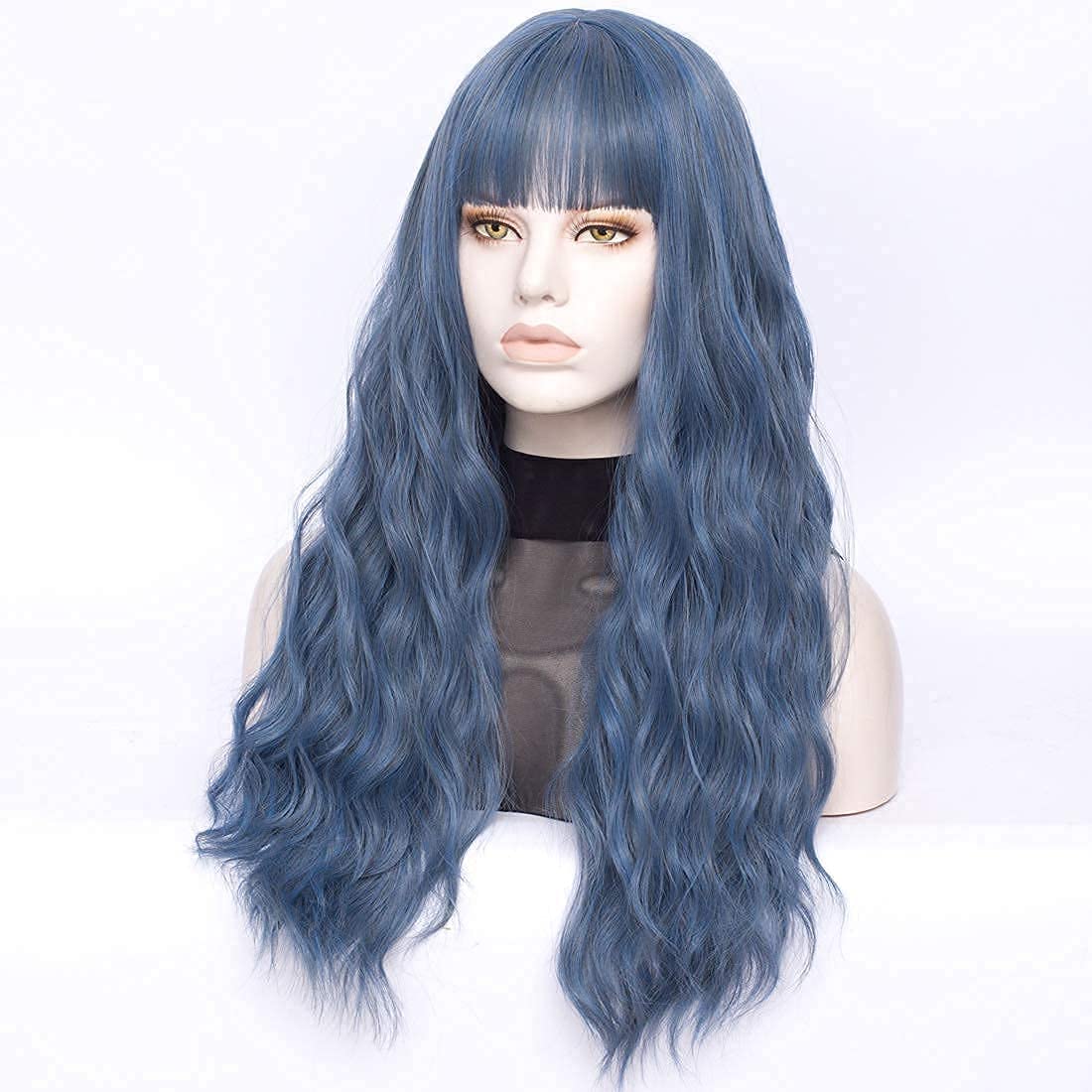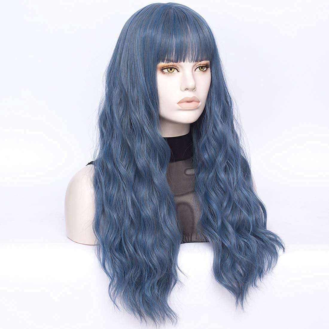 27 inches of long curly female girls charming wig synthetic with bangs (blue)