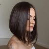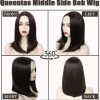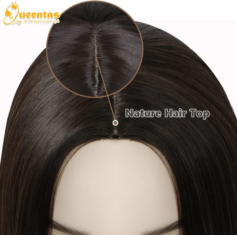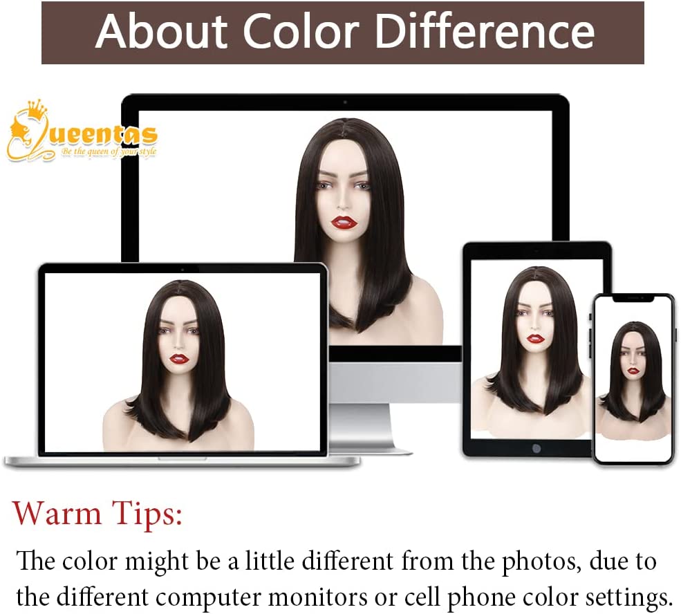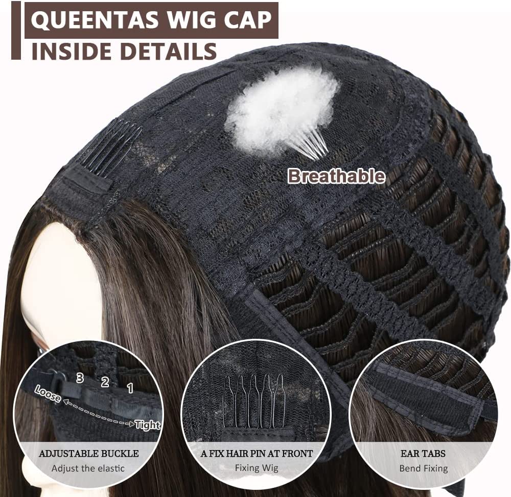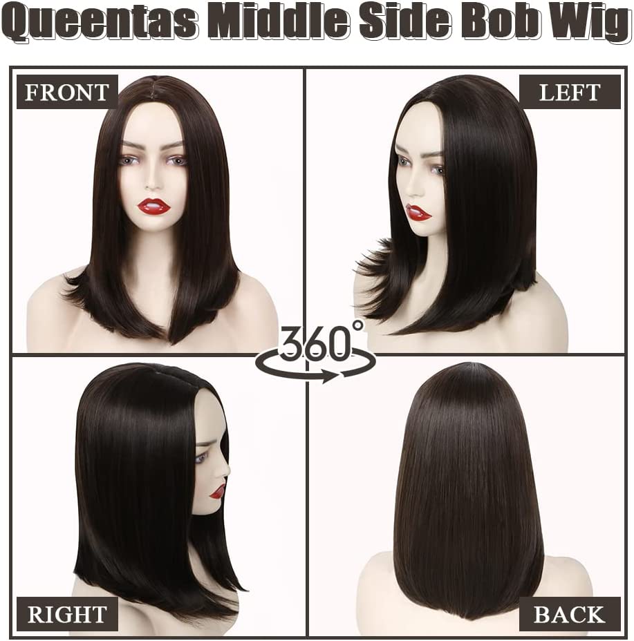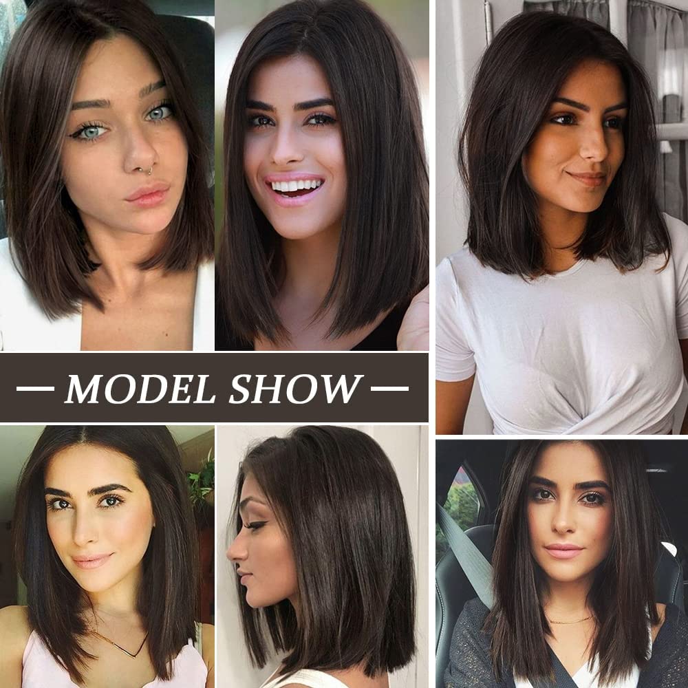 35.6 cm wig, shoulder length, short and stiff synthetic hair with a natural appearance, medium wig for women with wig cup (dark brown #4)