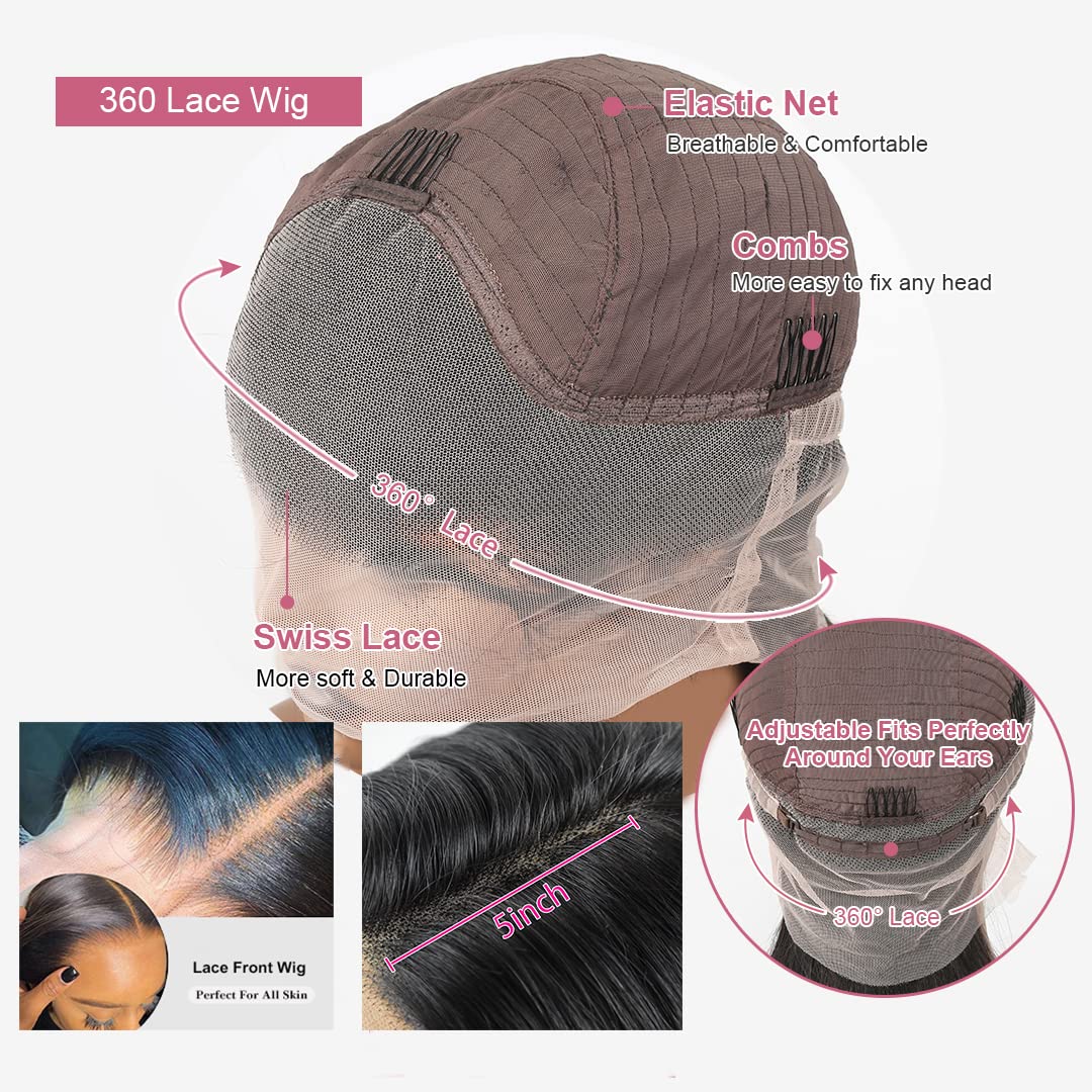 - 360 Lace Wig: Body Wave 360 Lace Front Wigs Human Hair 100% Unprocessed Brazilian Virgin Hair, Can Bring You an Excellent Wearing Experience, Suit Best for Ponytails and Updo Styles.