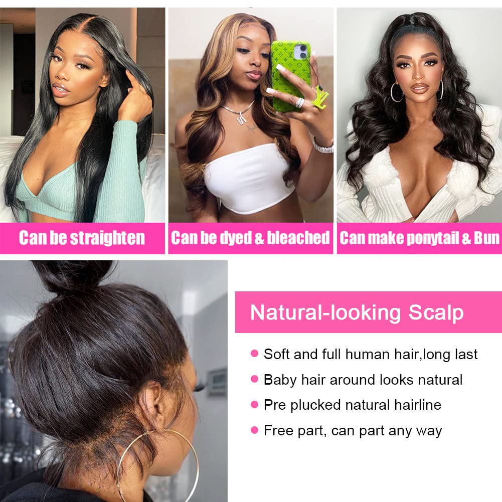 - Natural Hairline: 22.5×4 Inch Lace Can be Free Part, the Large Lace Area Can Create a Realistic Hairline and and a Natural Hair Edge.