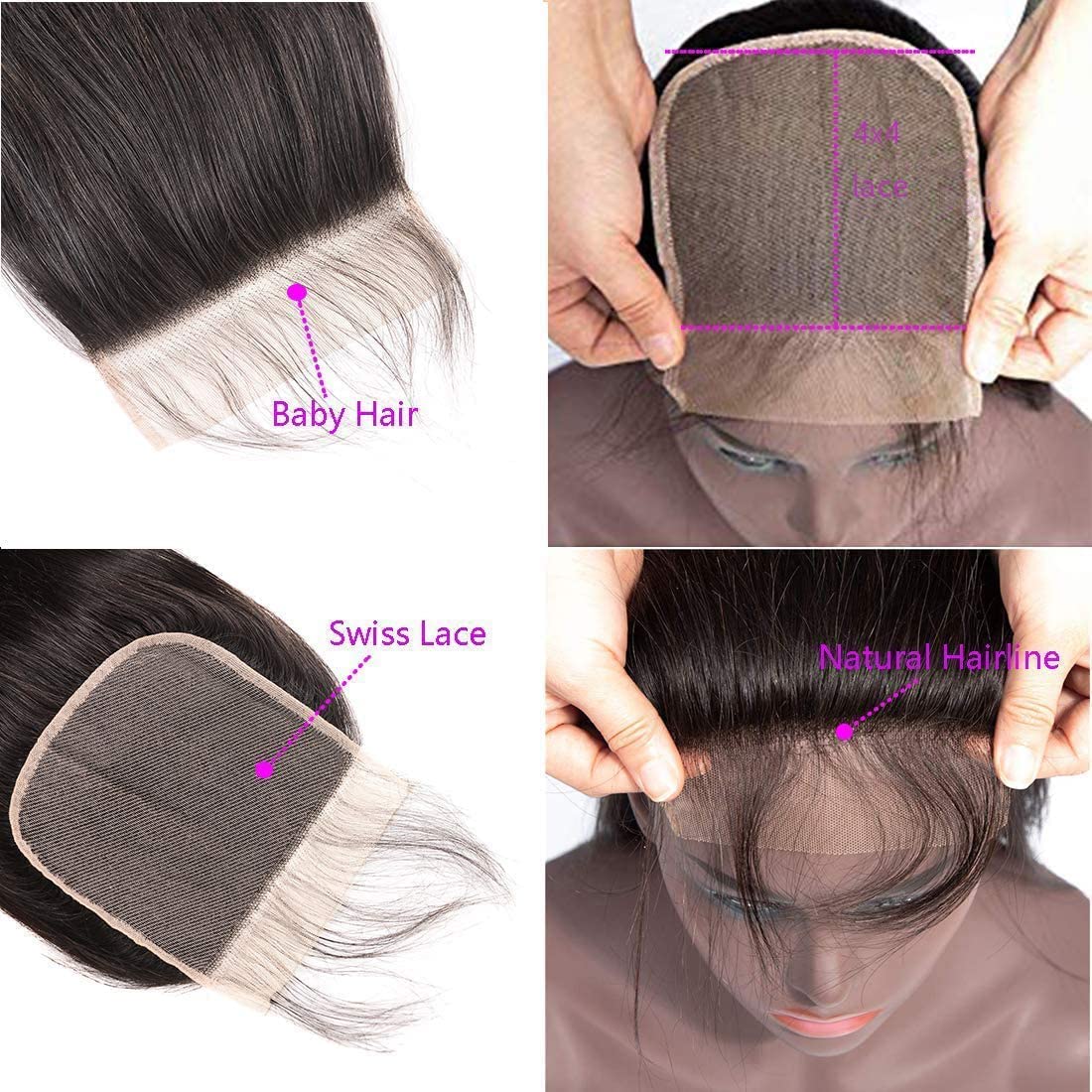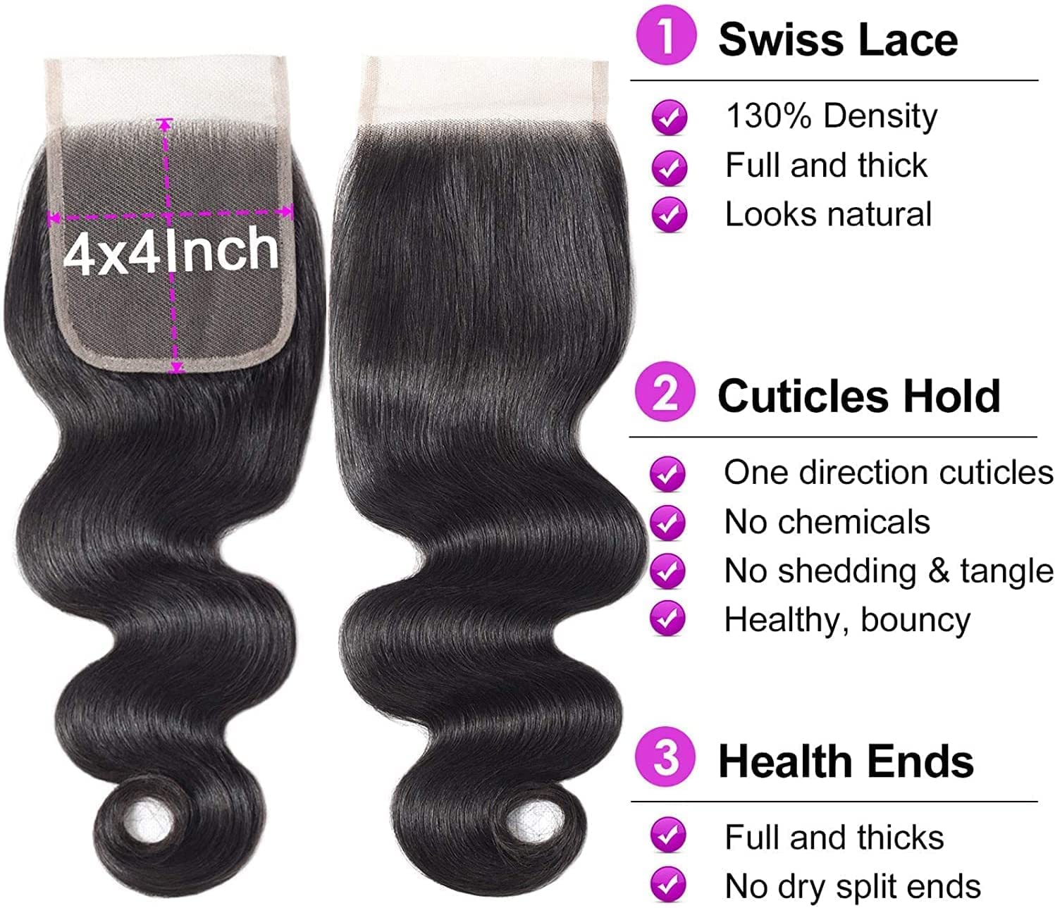 4 “X 4” Lace Closure Body Wave Brazilian Wig High Hair Brazilian Closure Wave Women Top Swiss Lace Free Part With Natural Hairline Baby Hair 130% Density 12 inches…