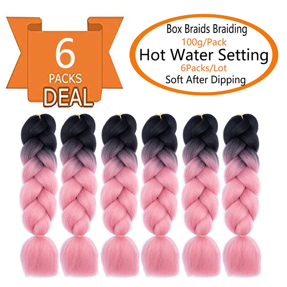 6 Packs Ombre Jumbo Braiding Hair Extensions 24 Inch High Temperature Synthetic Fiber Hair Extensions For Braiding (black To Rouge Pink)