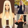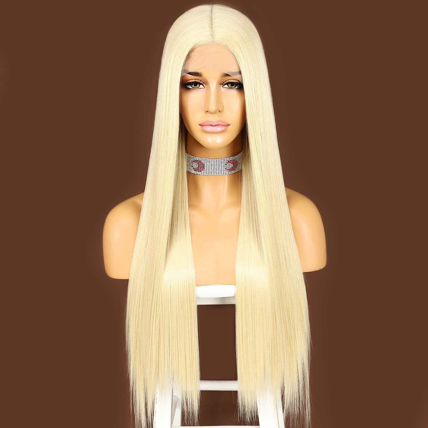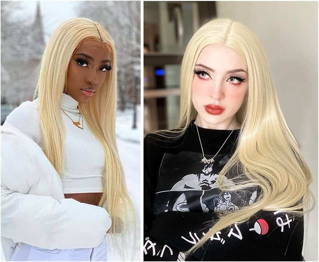 613 Blonde Long Straight Wig For Women Lace Front Wigs With Middle Part Kanekalon Futura Japanese Synthetic Wig 150% Density Heat Resistant 24inch