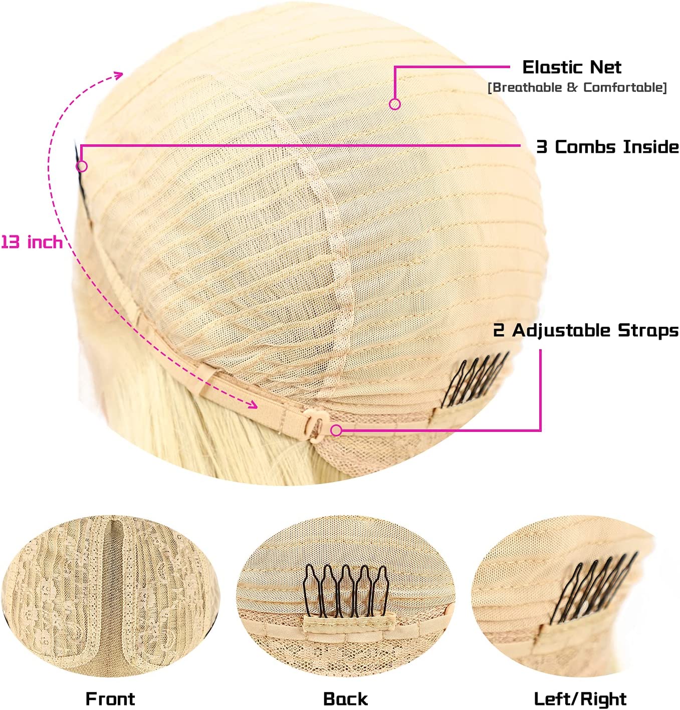 - Average Size Wig Cap: Circumference 22.5 Inches Stretched Medium Cap. The Long Straight Wig Can Fit Well for Most People.