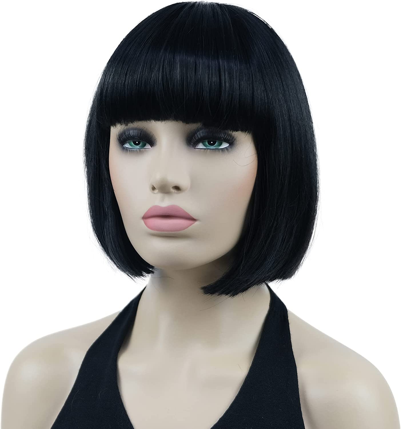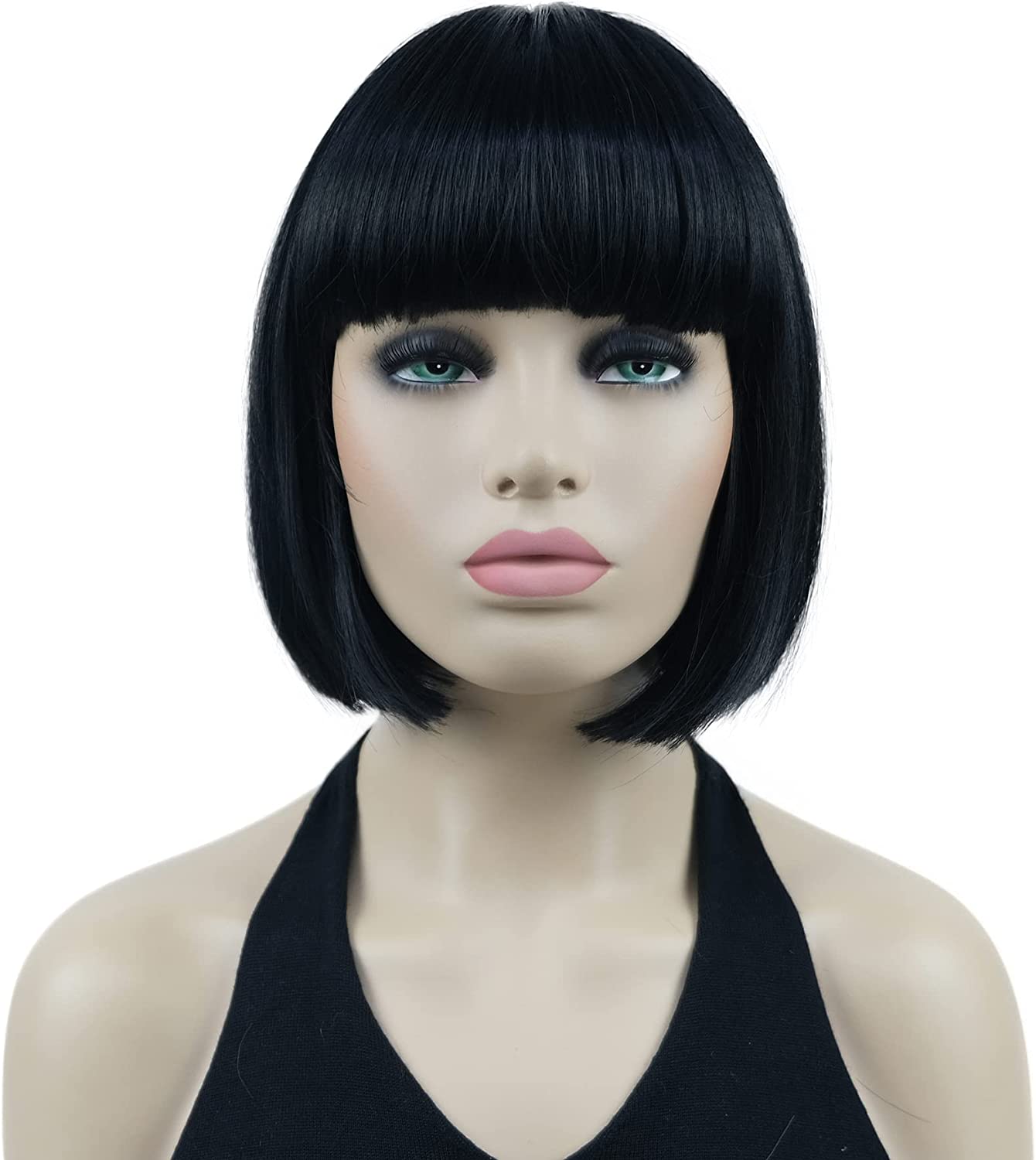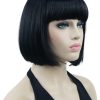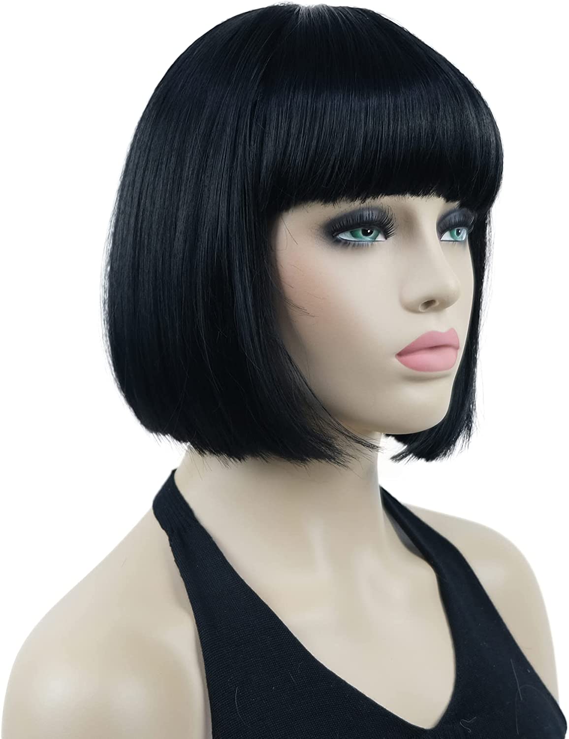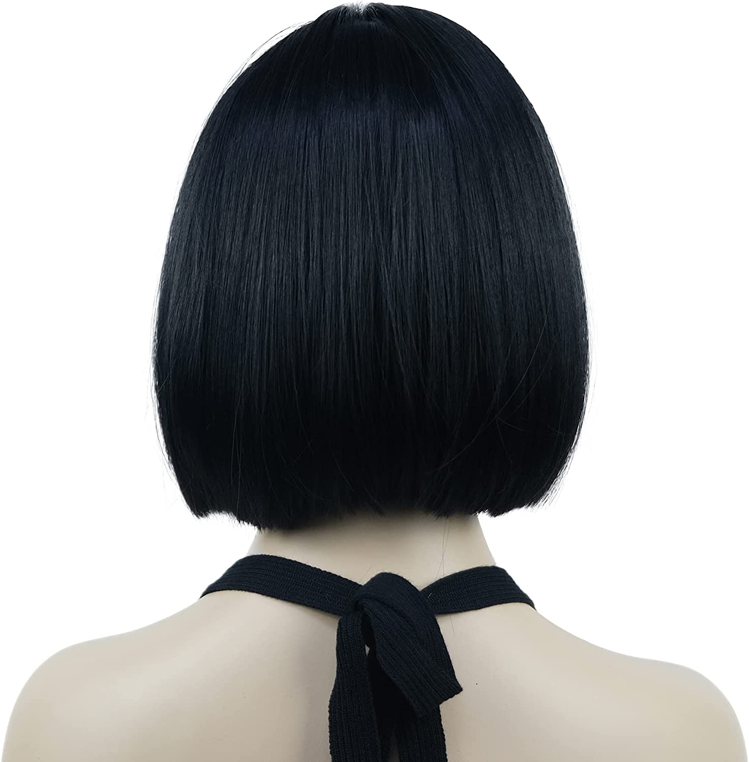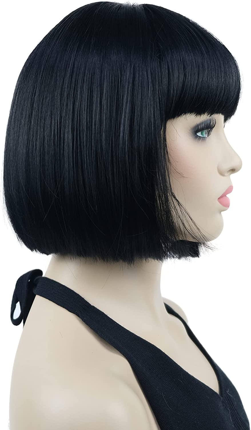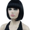 8″ Straight Short Bob Wig Cute Flat Bangs Synthetic Wigs Black