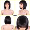 8″ Straight Short Bob Wig With Bangs Brazilian Straight Human Hair Wigs None Lace Front Wigs Human Hair Machine Made Bob Wigs For Women 130% Density (natural Black)