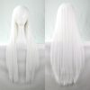 80 Cm Pure White Smooth Hair Cosplay Wig With Cap And Comb