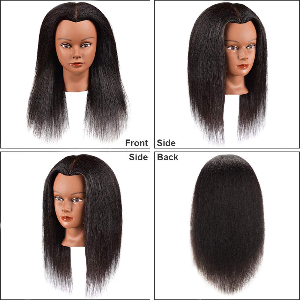 African American Mannequin Head With 100% Human Hair Kinky Curly Manikin Head Training Head Cosmetology Doll Head For Hairdresser Practice Styling Braiding With Clamp Stand (14 Inch)