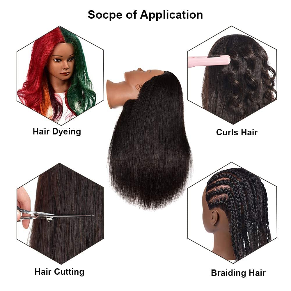 - ★.Mannequin head Feature: it is perfect for Cutting, Braiding, Setting, Styling, Dye, and Bleach and can be used with a curling iron and straightener, etc. Just treat it like your own hair,easy to part.