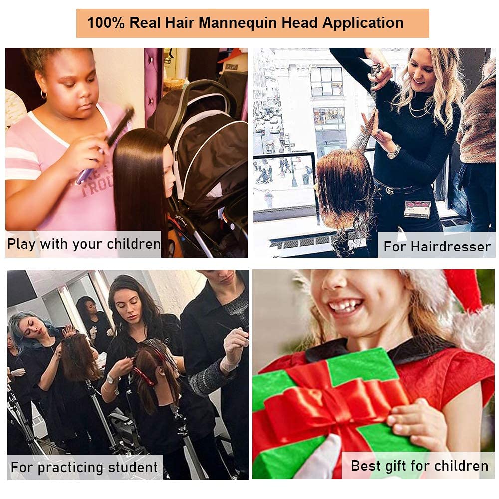 - ★. Mannequin head Material:100% pure top quality Real hair, Super Soft and Thick.