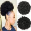 Afro Puff Drawstring Ponytail For Black Women , High Puff Drawstring Short Ponytail Bun For Short Natural Hair , Afro Kinky Curly Ponytail Hairpieces With Clip In Color 1B
