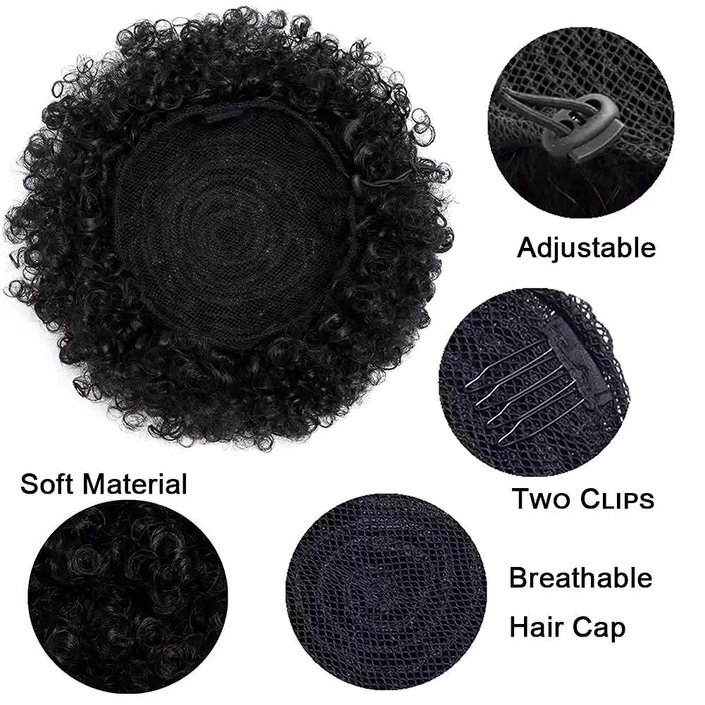 - 💖Comes Curly and Ready to Wear: Afro Puff Drawstring Ponytail , Quick & Easy to Install, Protective & Versatile. Just put your own hair into a buns ponytail, Attach the extension piece with drawstring and combs and go!