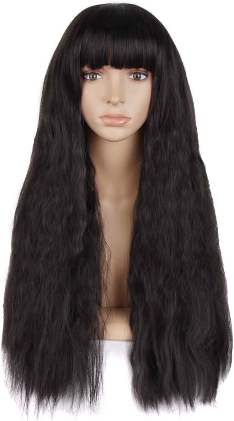 Beautiful Women’s Flat Bang Long Wave Curly Wig (black)
