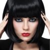 Black Bob Wigs for Women, 12” Short Black Hair Wig with Bangs, Natural Fashion Synthetic Wig, Cute Colored Wigs for Daily Party Halloween BU027BK