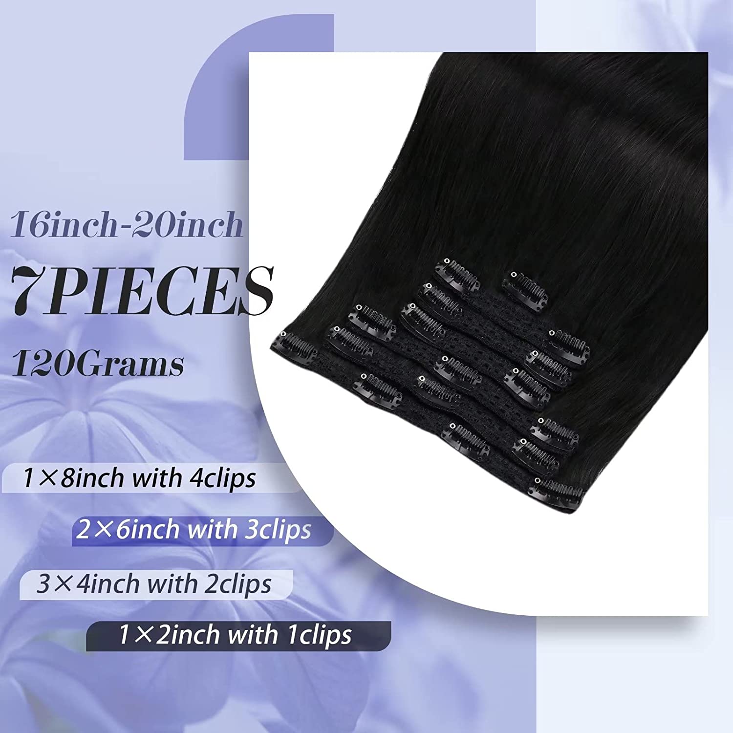 - ღ。【Clip in Hair Extensions Specifications】 clip in extensions, 10-14 inch 5 pieces 70 grams; 16-24 inch 7 pieces 120grams. clip in hair extensions is less shedding highlights and tangling, full head from top to the end. Usually 1 pack is enough for full head attachment, 2 packs for thin hair.