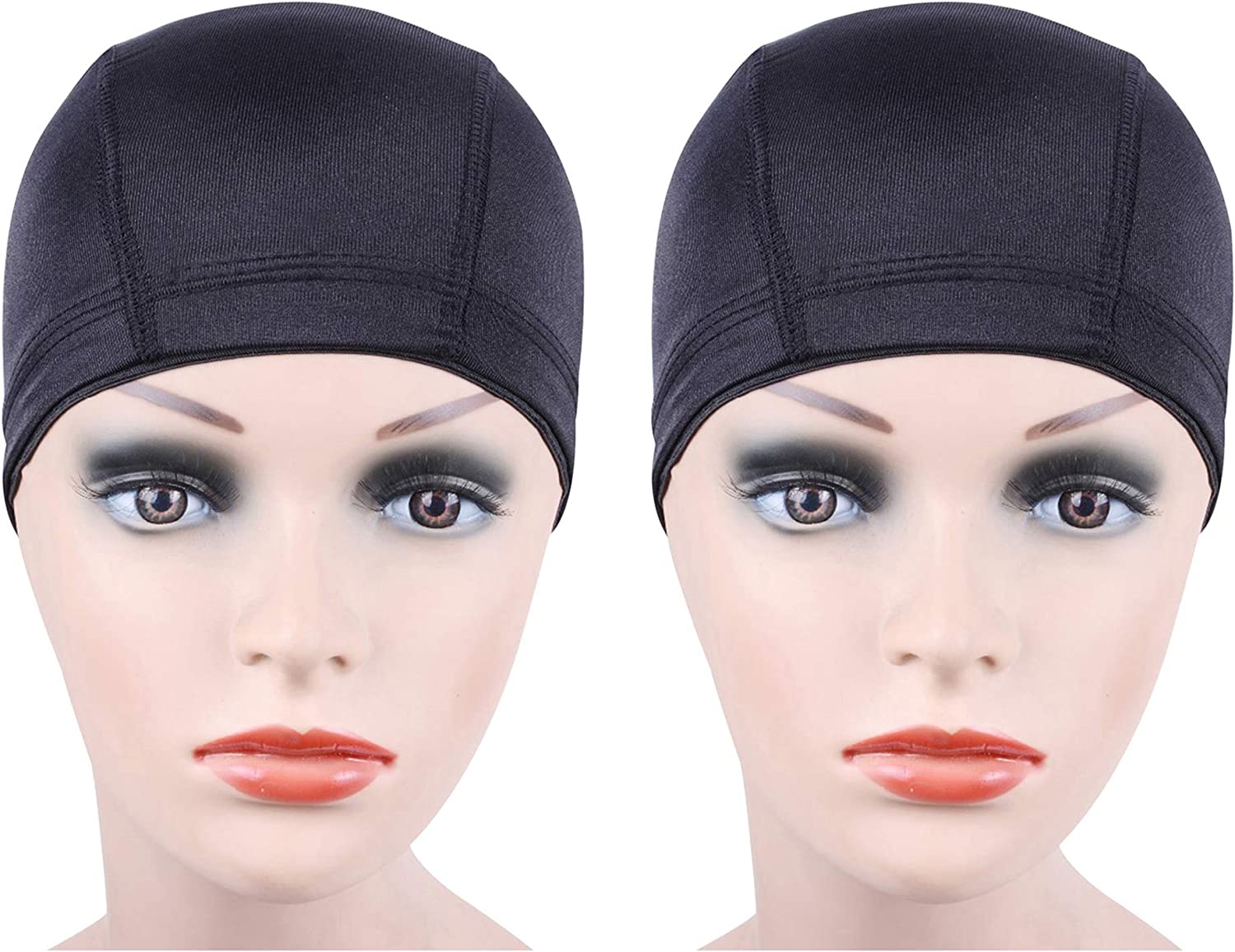 Black Dome hat to make wigs extensible hairstyles with 2 pieces wide elastic band/lot (L)