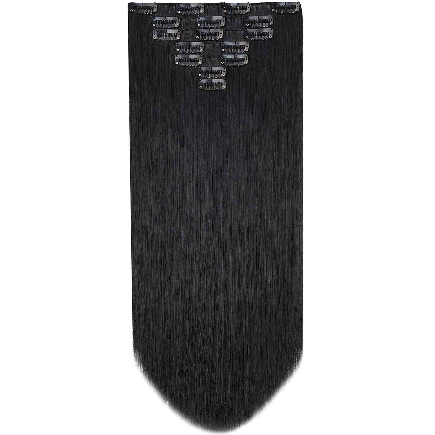 - Hair material: black hair extension products are made of synthetic materials, this clip hair extension is fluffy and realistic, easy to comb and not easy to knot, a pack of 2; each weight is 5(OZ), suitable for women and girls with less hair, if your hair volume is partial Less, just use 2 of them. If you have a lot of hair, you can use it instead.