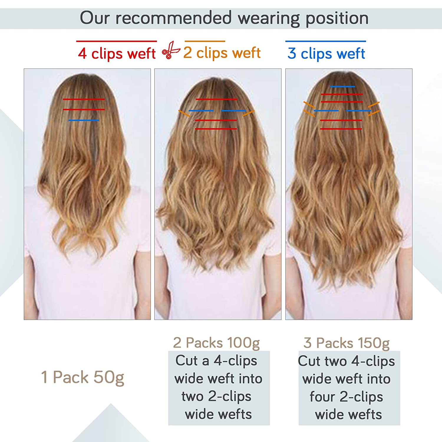 - SPECIFICATION: NOT THICK HAIR,The weight of black hair extensions is ONLY 50g, get one pack is a good option if you have thinning hair. But if you want to make a full head, 3-4 packs are recommended according to your hair volume.