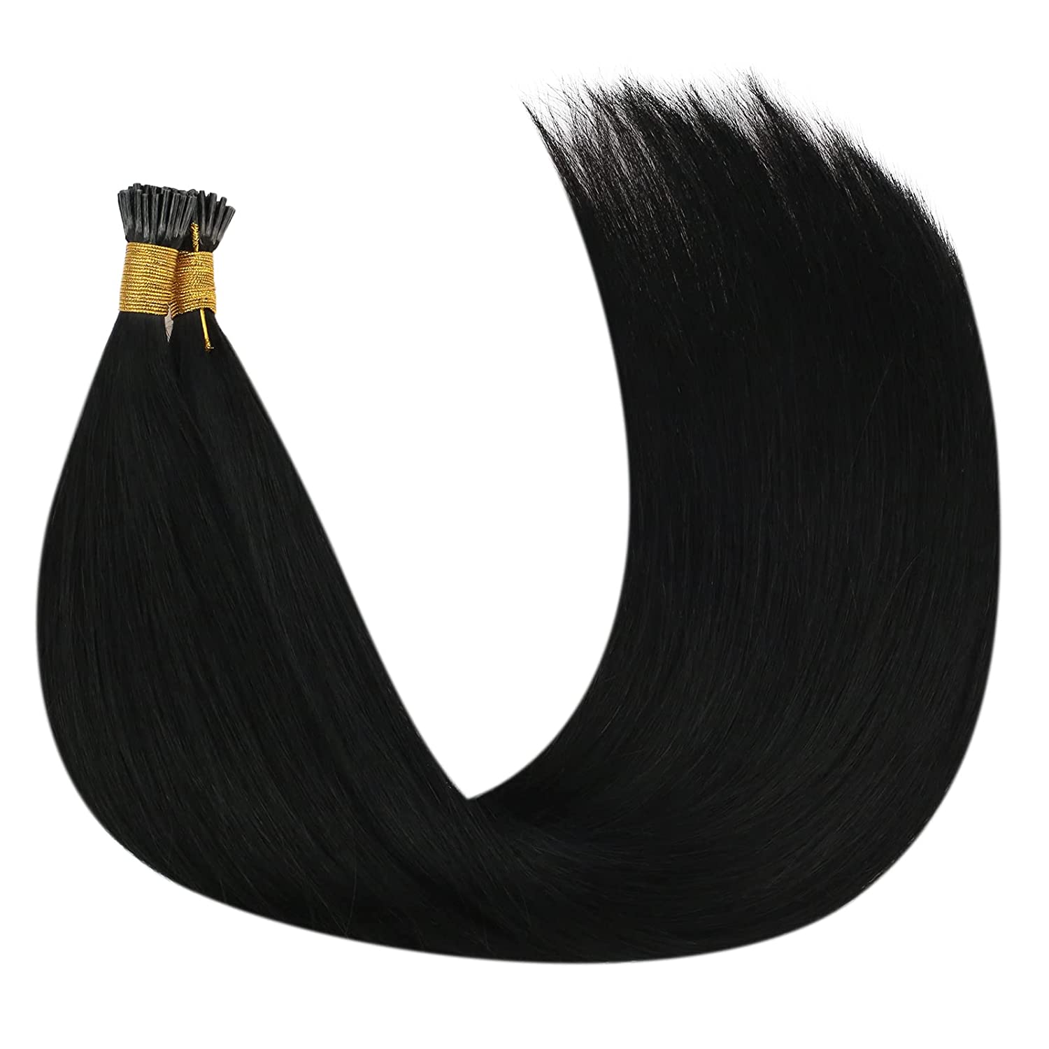 Black I Tip Hair Extensions Human Hair 14inch Cold Fusion Itip Human Hair Extensions Jet Black Pre Bonded Human Hair Extensions Itip Extensions Keratin Bond Hair Extensions 0.5g/s 50g