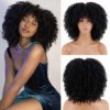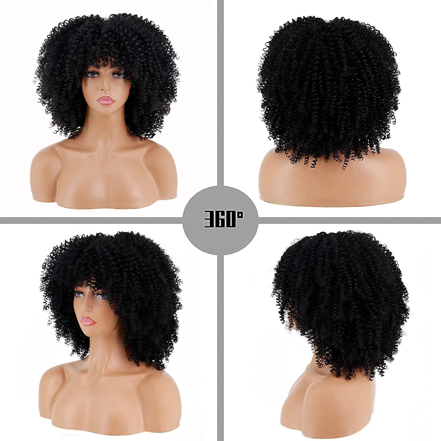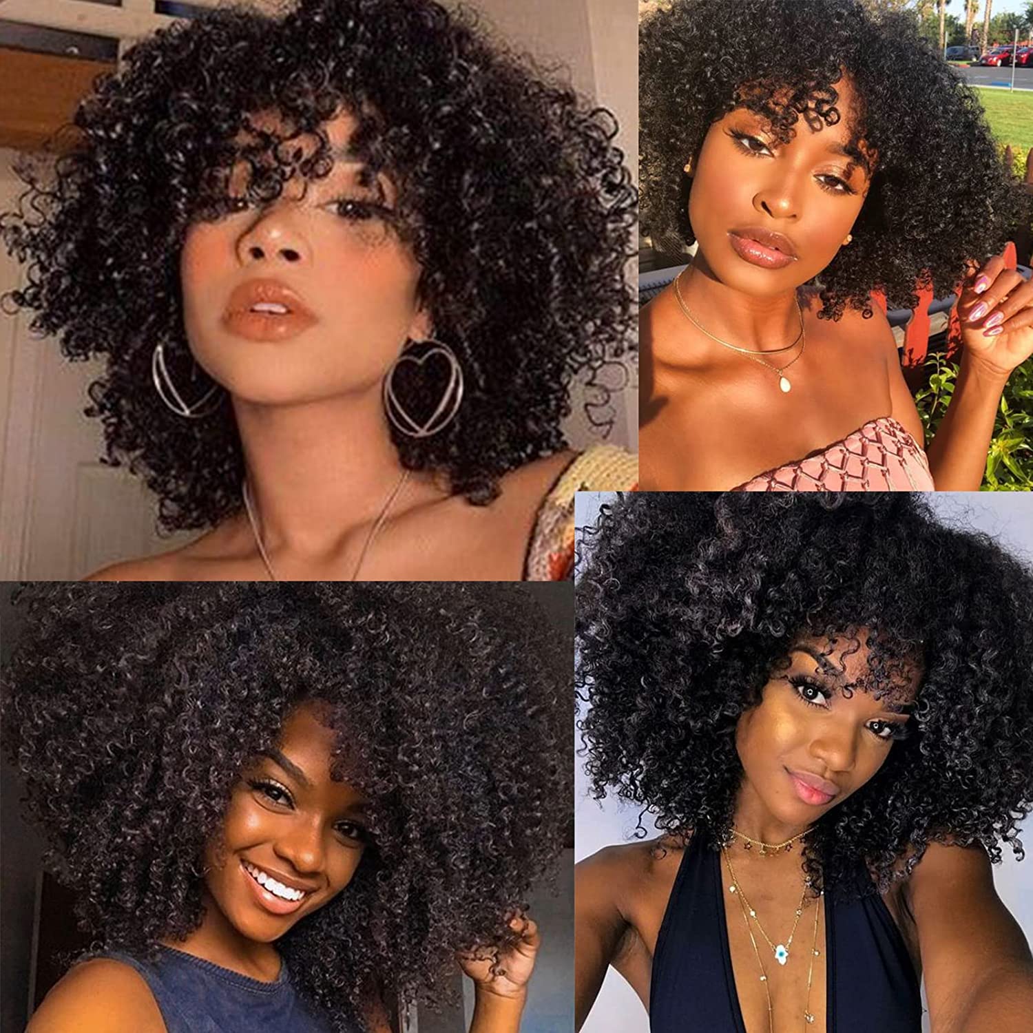 Black kinky Curly Wigs for Black Women, Short Black Curly Afro Wig with Bangs, Synthetic Heat Resistant Full Afro Curly Black Wigs for Daily Party(Natural Black)