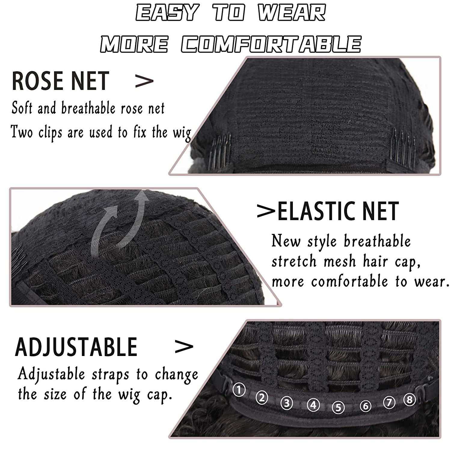 - Wig Care: Short black Afro curly kinky wig may be squeezed in transit, when you receive this afro wigs for black women, please gently shake the wig to make it back to its original fluffy look, separate the entangled part slowly with your fingers. When not wearing, plese put it on the wig holder. Tip: The correct care method can prolong the service life of this black curly wig.