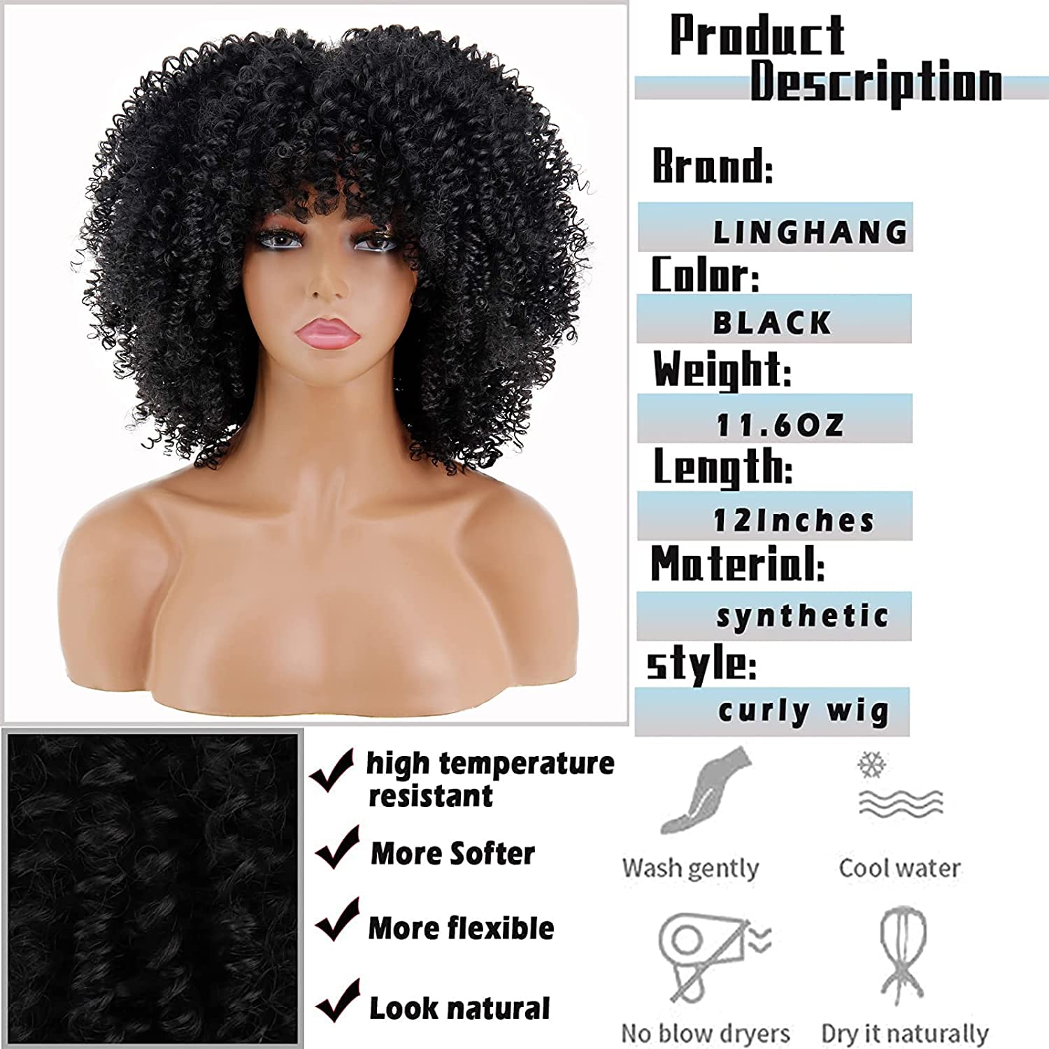 - Wig Material: This curly wigs for black women is made of high-quality high-temperature resistant synthetic fiber and advanced processing technology make curly Afro wig fuller, more fluffy and making it Looks natural,curls are beautiful, and no smell. you can cut it a bit to match your face perfectly. This black kinky curly wig will be a stellar addition to your collection.