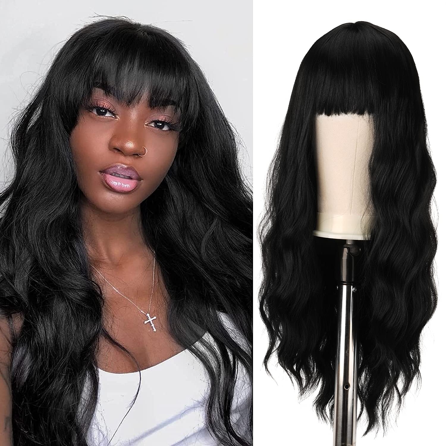 • 【Gorgeous New Looking】long wave wig with bangs is a fresh, fashion wig, the charming and distinctive waves with layers that frame your face perfectly.