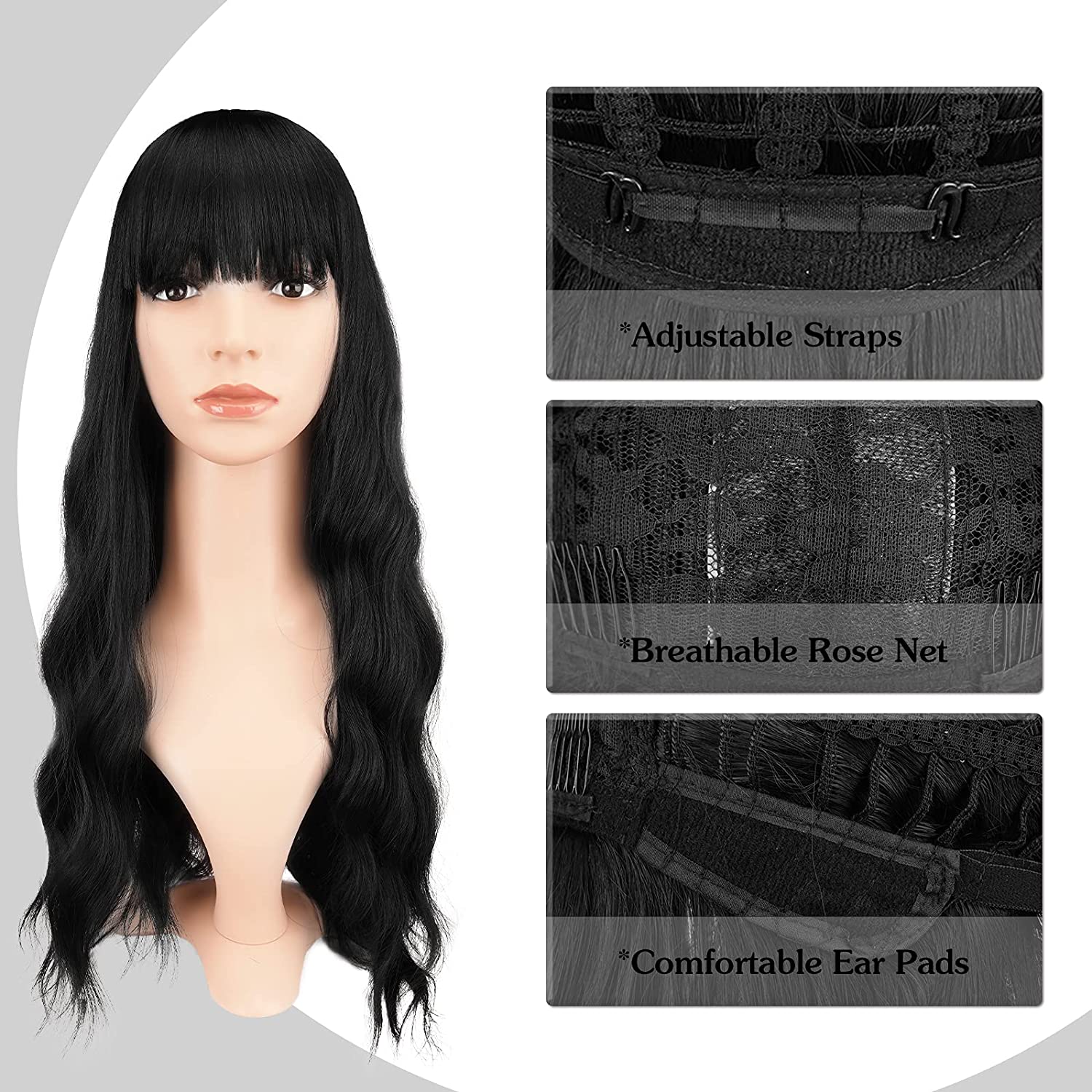 FESHFEN 24 inch Long Wig with Bangs Long Wavy Synthetic Heat Resistant Costume Cosplay Wigs for Girl Wigs for Daily Party Use