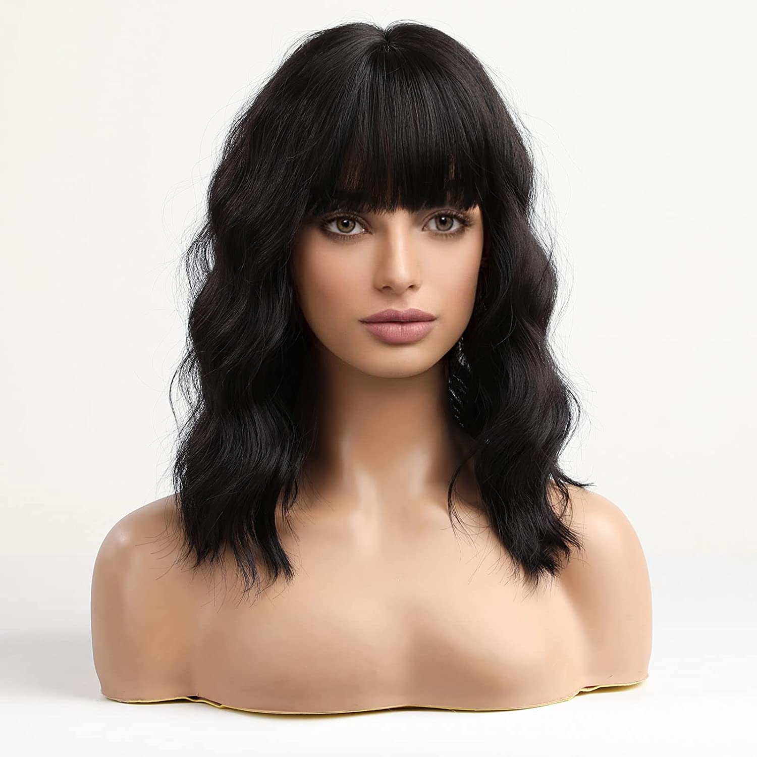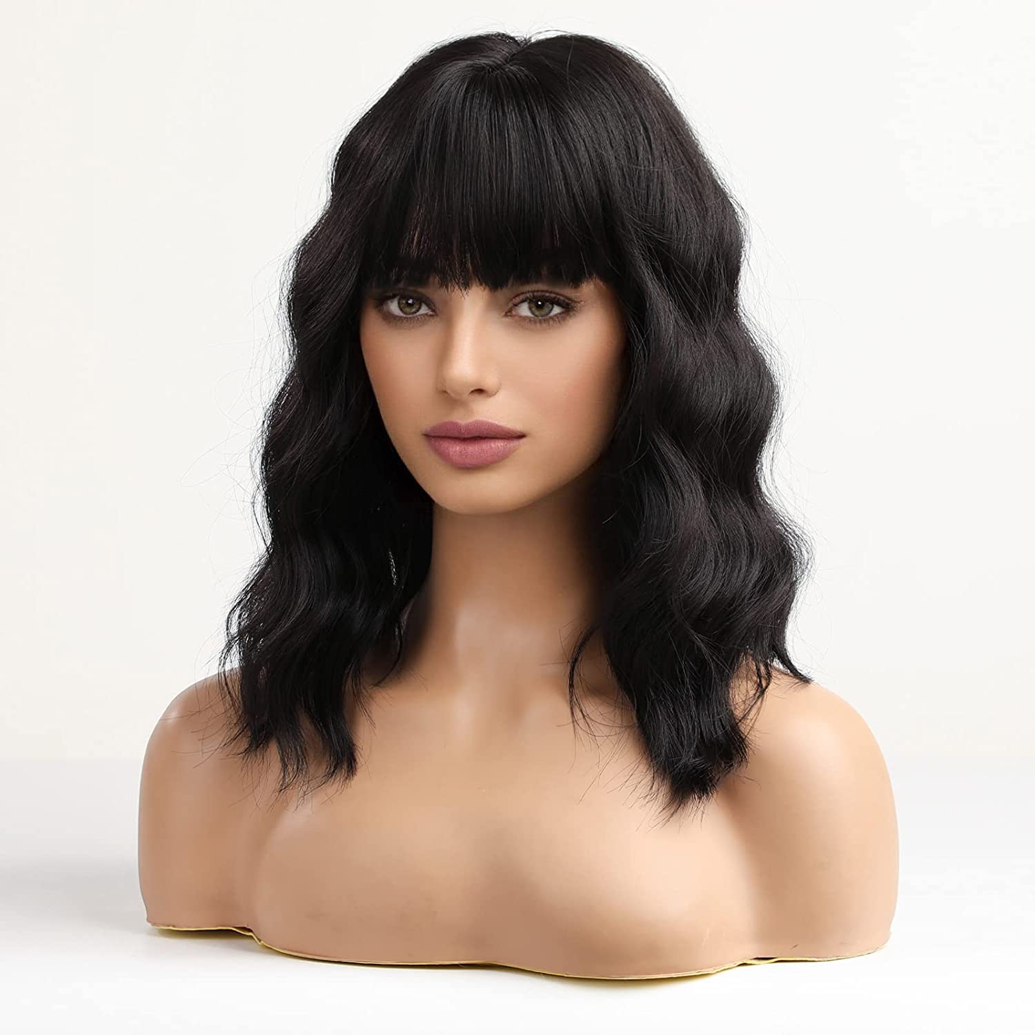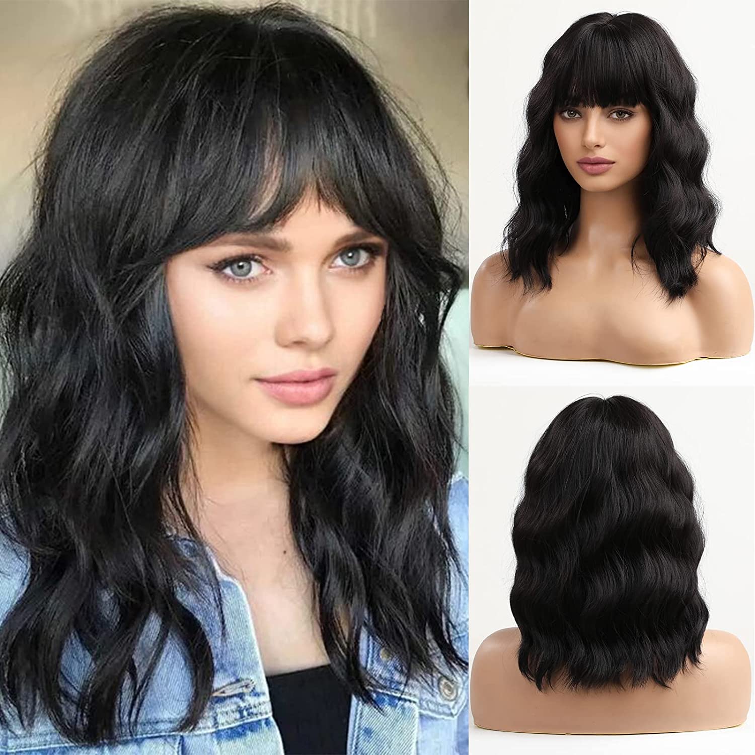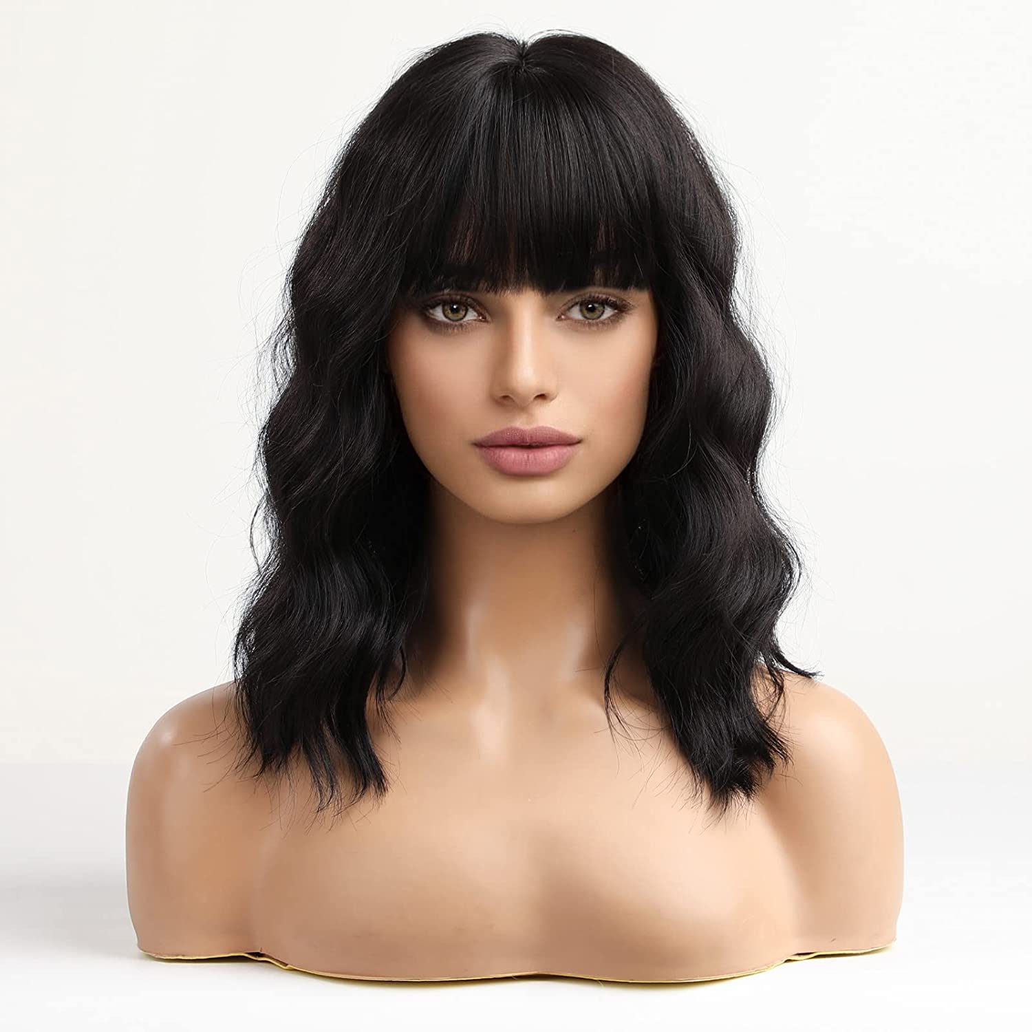 Black Wigs For Women, Shoulder-length Short Synthetic Wig With Fringe For Daily Or Cosplay
