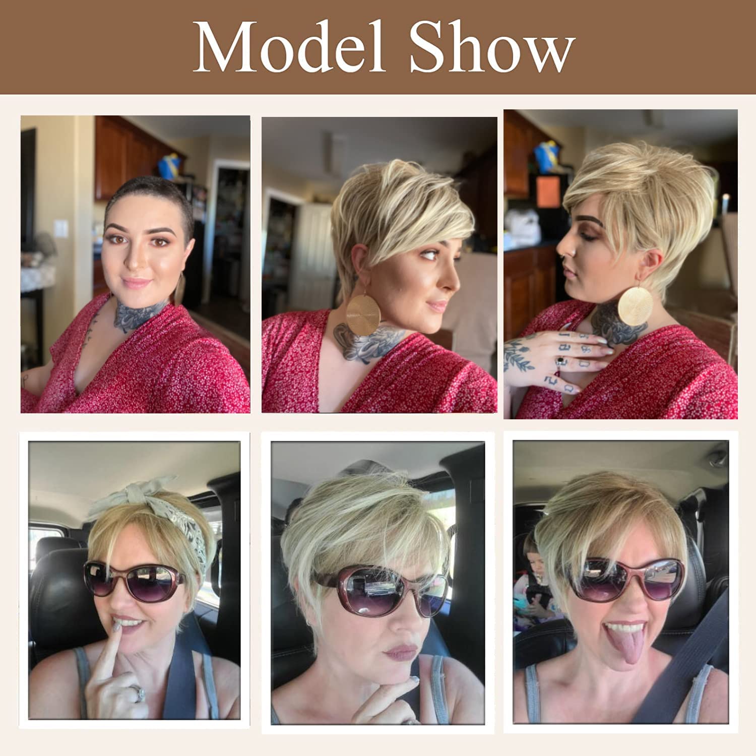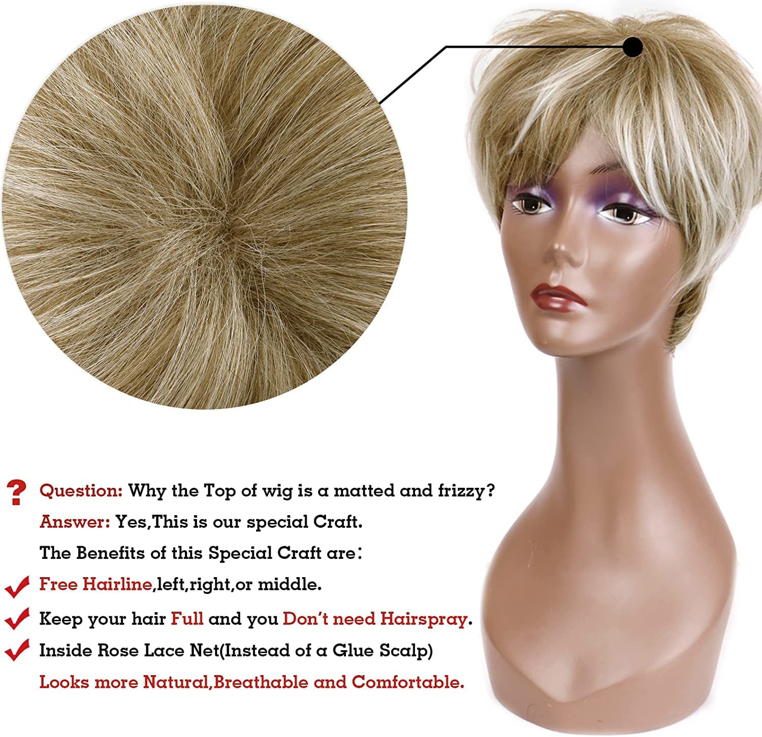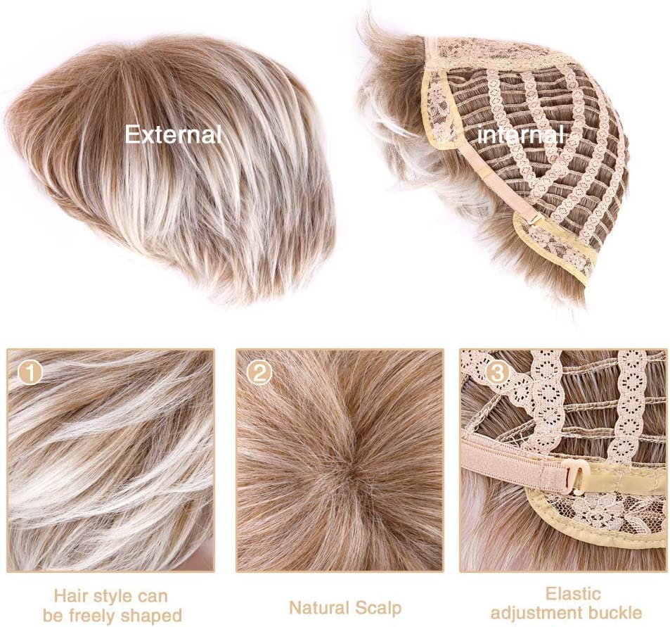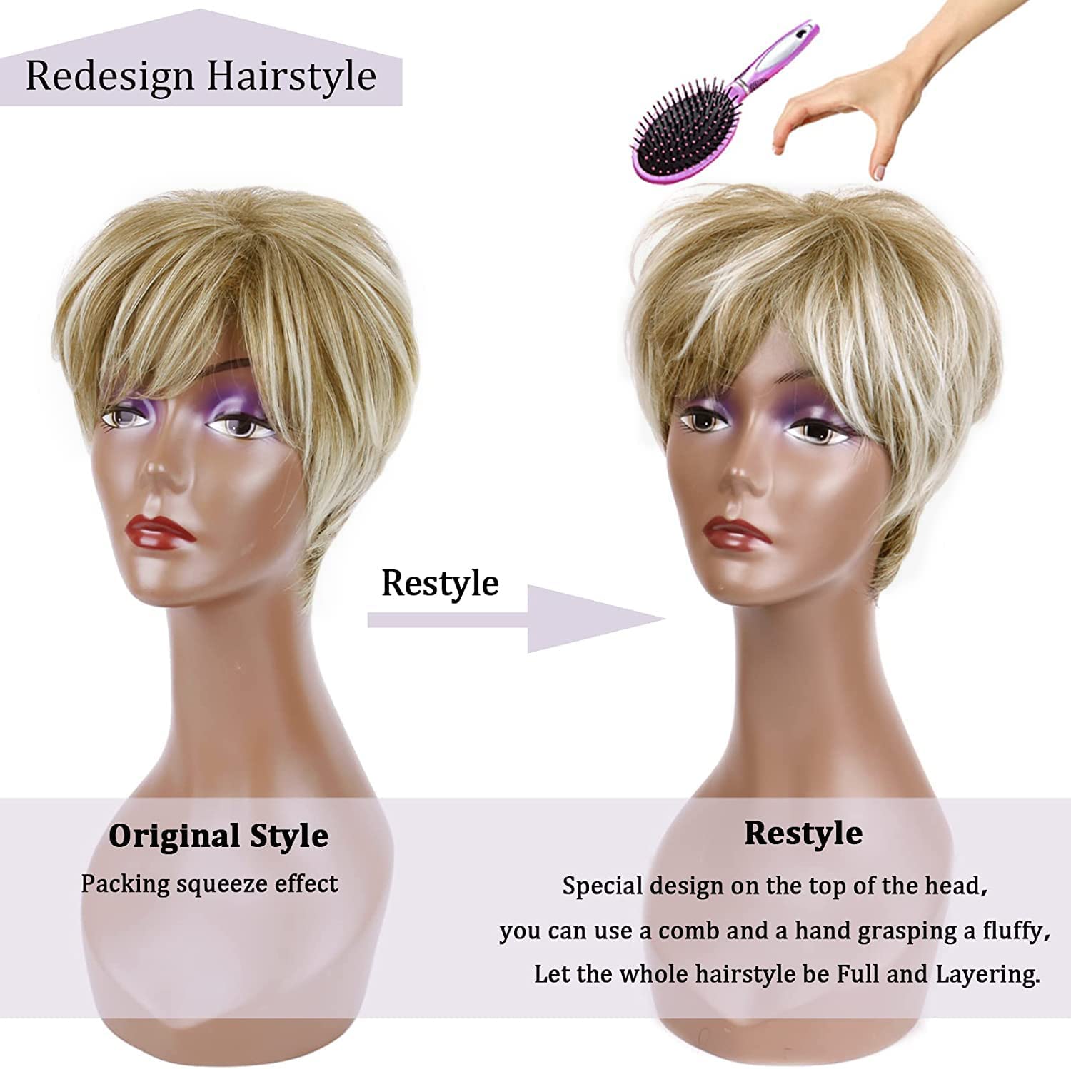 - because the upper part of the wig is ruffled and crepe: the short blonde wig used a special profession. The advantages of this special profession are: Attacking free, left, right or central hair; Keep your hair full and you don’t need lacquer; Within the pink lace network (instead of a scalp glue) it seems more natural, breathable and comfortable. 3 times to make the hair soft; 2. Use a comb to comb the hair on the top of the head (the crown) from the root to the back to make the hair soft; 3. Use the hands to make the consistency of the hair stand out and you can spray a spray for the styling. A different batch, you can model this base for wig according to your needs. People, the adjustment band in the hood changes the estate.
