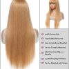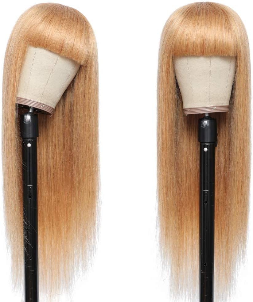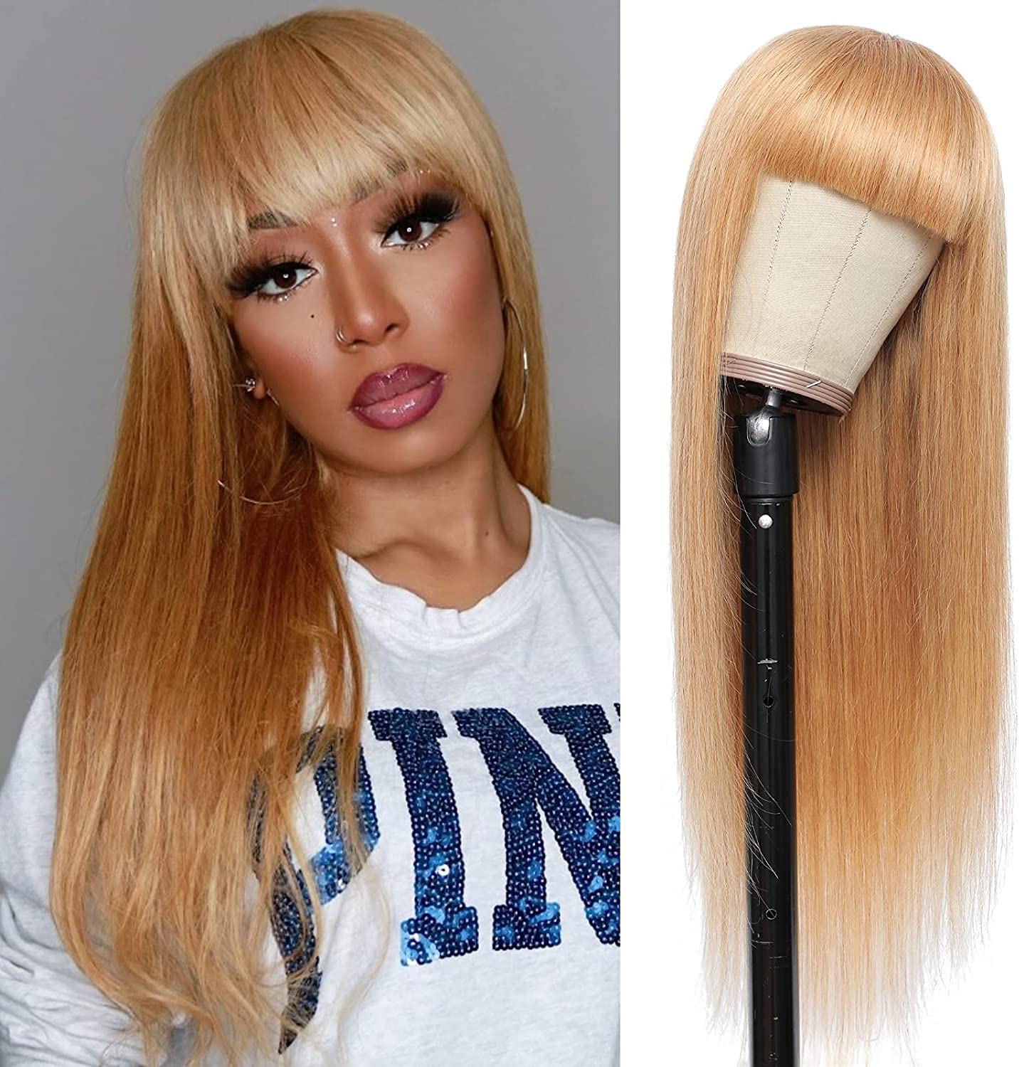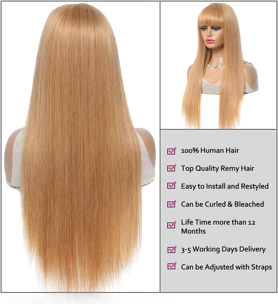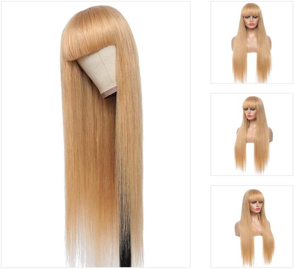 - Detail: Long Blonde Wig, Natural smooth hair, 16/18/20/22/24/26/28 inch, available in the widest range of length and colors, Capless wig with Brazilian bangs Can modify your more beautiful face.