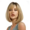 Blonde Wig with Bangs Short Hair Wigs for Women Ombre Blonde Wig Straight Bob Wig Synthetic Natural Heat Resistant Side Part Wigs 14 Inches for Party Daily Wear