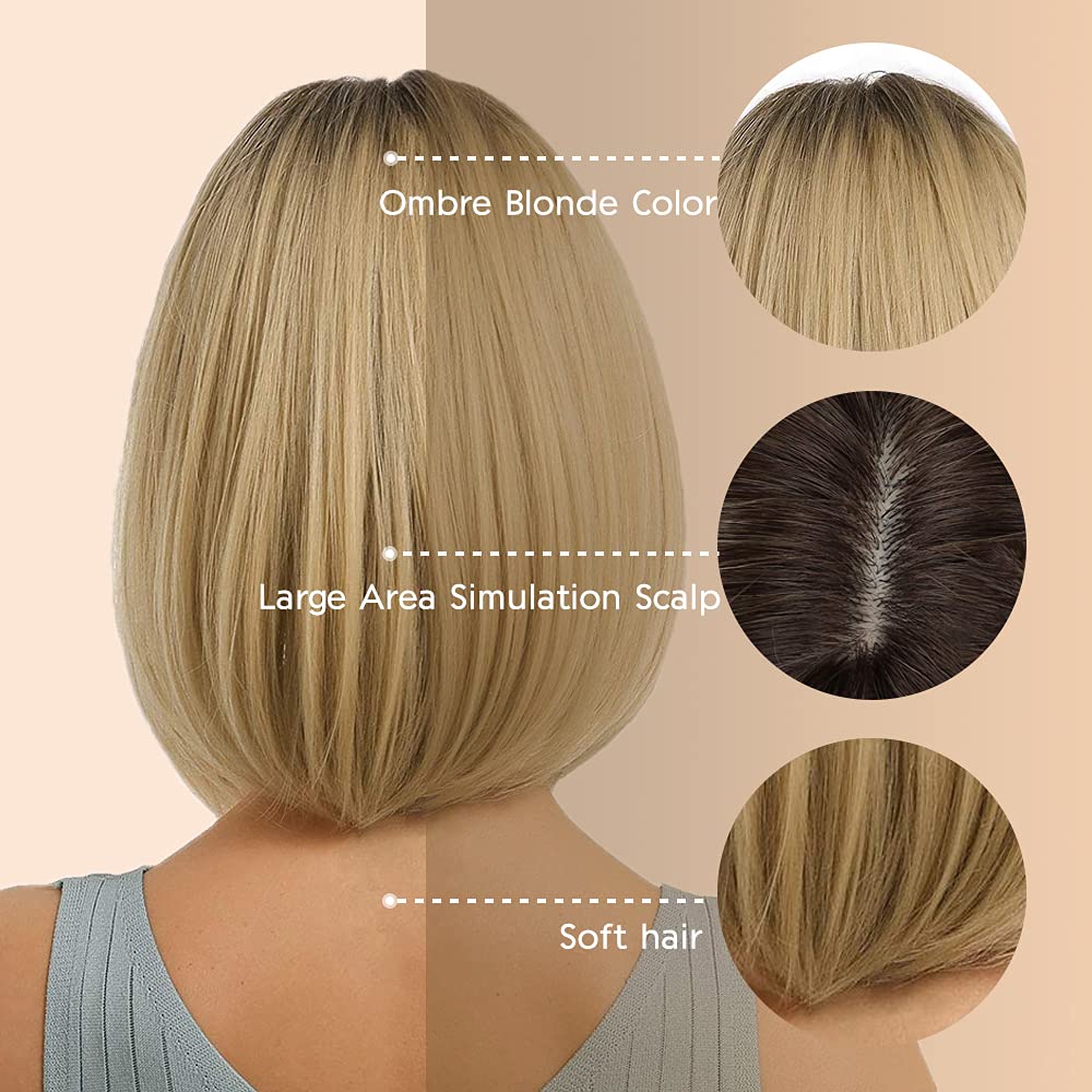 - High-quality Materials: Blonde wig is made of the best and most realistic synthetic heat-resistant fibers. Best Bob Ombre Blonde Wig with Bangs, Natural and Soft, Ombre Ombre Blonde Colored hair make your more charming and sexy, its a perfect hairstyle.