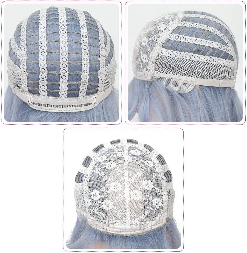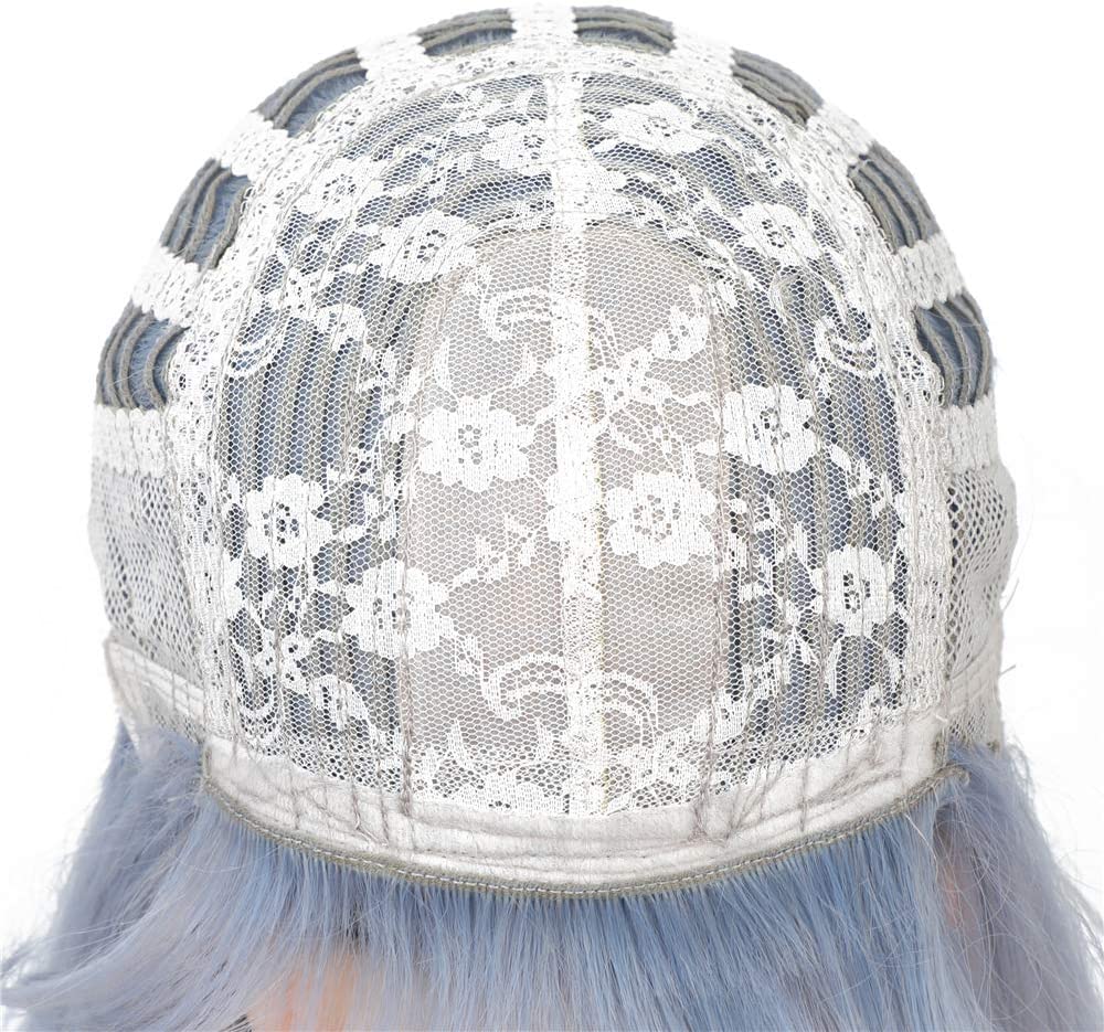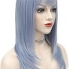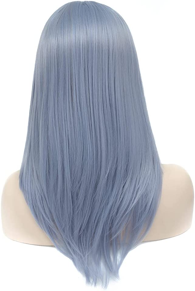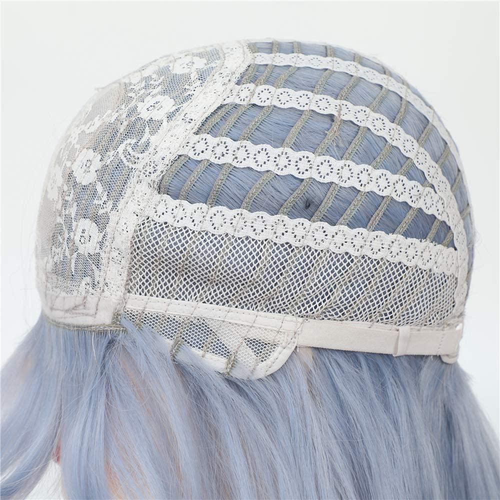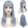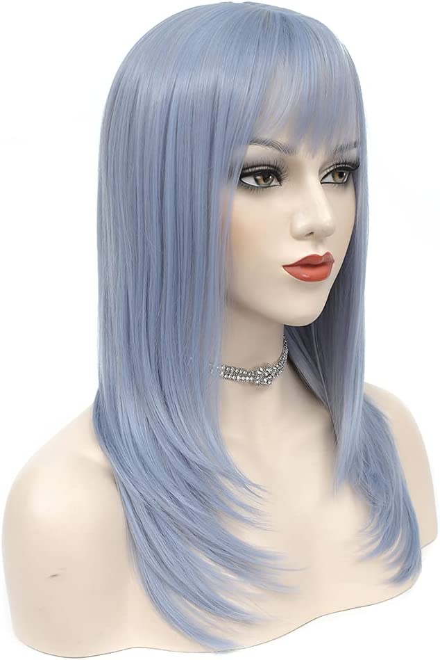 Blue wig for women natural wig different colors 20 “Hair steep wig natural look with fringe fashion wig synthetic hair color Halloween (blue)