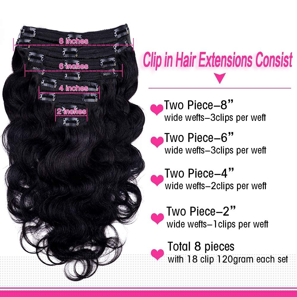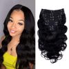 Body Wave Clip In Hair Extensions For Black Women Body Wave Human Hair Clip In Hair Extensions Natural Black Color Full Head Brazilian Virgin Hair,8/pcs With 18clips,120 Gram (16inch, Body Hair)